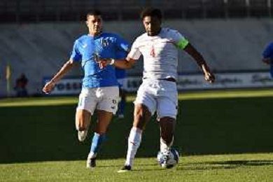 © TVRG Italia vs Svizzera nella foto Cristian Volpato (Italia) e Aurele Amenda (Svizzera) Varese 27-09-2022 Stadio Franco Ossola partita amichevole tra le nazionali Under20 foto Roberto Garavaglia/ag. Aldo Liverani sas