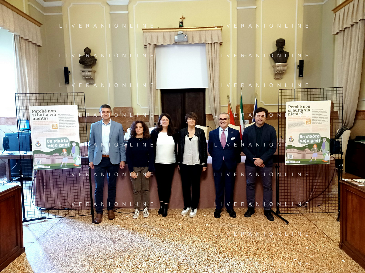 IMOLA 27 09 2022 CONFERENZA STAMPA "A IMOLA NON SI BUTTA NIENTE"NELLA FOTO DA DESTRA MATTEO GUIDI AD LAST MINUTE MARKET,PIER ANGELO RAFFINI,DANIELA SPADONI ELISA SPADA ASSESSORE ALL'AMBIENTE,UFFICIO DEL COMUNE ,E MARCO POLI HERA FOTO GIANNI SANNA-AG ALDOLIVERANI SAS