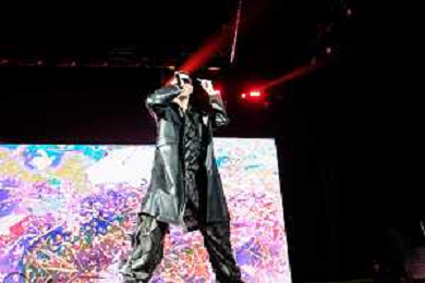The Italian rappers Fabio Bartolo Rizzo as know with Marracash pseudonym sings on a stage for his Persone Tour at Arena di Verona in Verona, Italy, on 25 September 2022 ©Roberto Tommasini / Ag. Aldo Liverani Sas