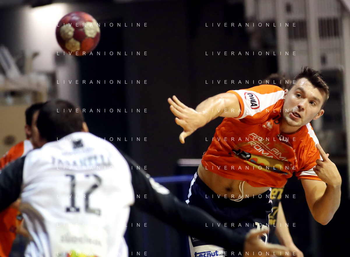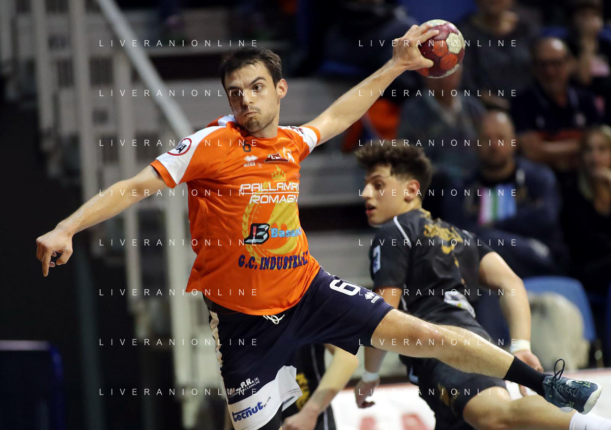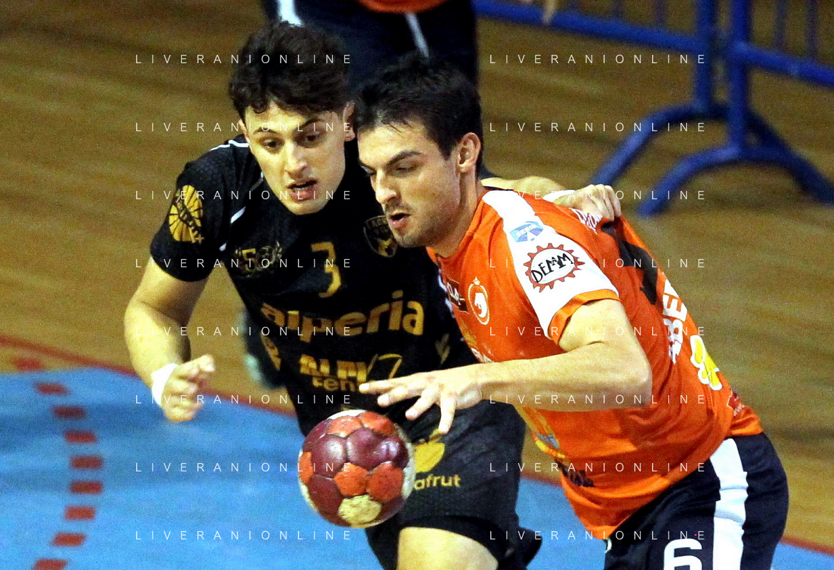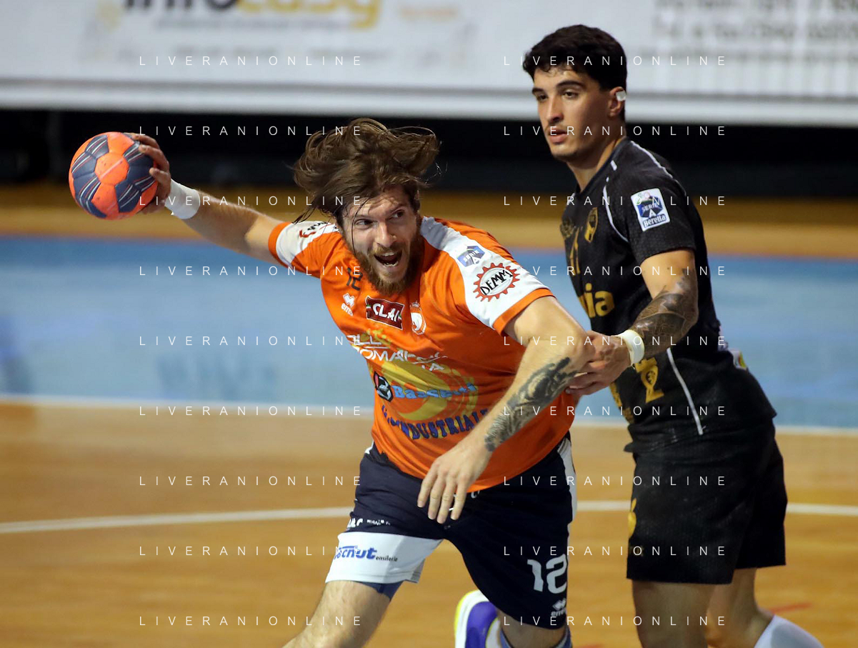 FAENZA 01 10 2022 PALLAMANO ROMAGNA-ALPERIA MERANO SERIE A1 NELLA FOTO LAURSENANTON HOG MERANO(2 METRI E 15) E GREGORIO MAZZANTI IMOLA 195 FOTO GIANNI SANNA-AG ALDO LIVERANI SAS