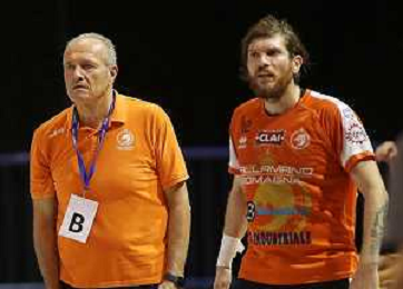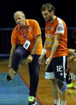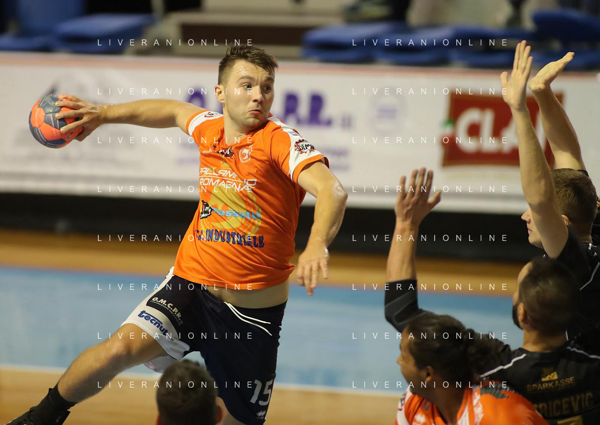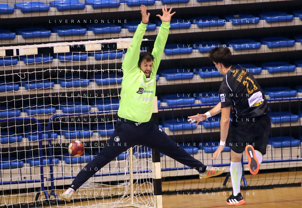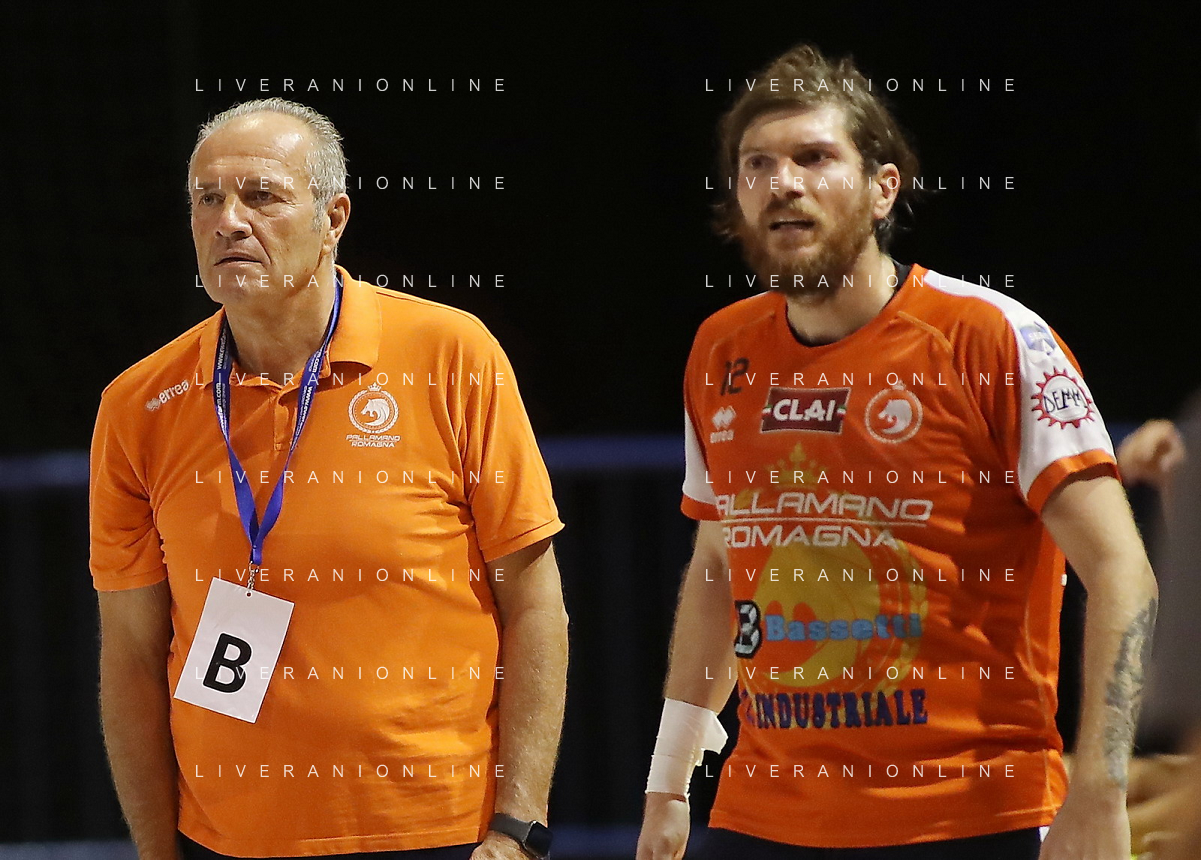 FAENZA 01 10 2022 PALLAMANO ROMAGNA-ALPERIA MERANO SERIE A1 NELLA FOTO LAURSENANTON HOG MERANO(2 METRI E 15) E GREGORIO MAZZANTI IMOLA 195 FOTO GIANNI SANNA-AG ALDO LIVERANI SAS