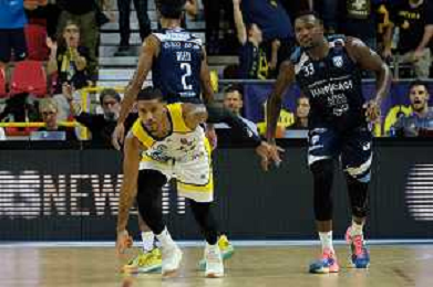 Exultation of Karvel Anderson - Tezenis Verona during the match between Tezenis Verona and Happy Casa Brindisi valid for the Italian A1 basketball championship on October 2, 2022 at Pala AGSM-AIM in Verona, Italy FOTO ROBERTO TOMMASINI-AG ALDO LIVERANI SAS