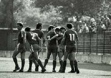 21-09-1986 MONZA-CAMPIONATO DI CALCIO SERIE C MONZA-SPAL 2-1 NELLA FOTO ABBRACCI GIOCATORI MONZA DOPO IL GOAL AG ALDO LIVERANI SAS