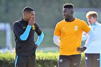 TVRG Allenamento Inter nella foto Denzel Dumfries (Inter) e Andre' Onana (Inter) Appiano Gentile (CO) 03-10-2022 Centro sportivo Suning in memoria di Angelo Moratti Allenamento Inter in preparazione della gara contro il Barcellona valevole per la 3a giornata del gruppo C della fase a gironi della UEFA Champions League foto Roberto Garavaglia/ag. Aldo Liverani sas/AGENZIA ALDO LIVERANI SAS