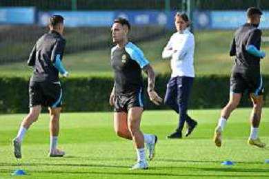 TVRG Allenamento Inter nella foto Lautaro Martinez (Inter) Appiano Gentile (CO) 03-10-2022 Centro sportivo Suning in memoria di Angelo Moratti Allenamento Inter in preparazione della gara contro il Barcellona valevole per la 3a giornata del gruppo C della fase a gironi della UEFA Champions League foto Roberto Garavaglia/ag. Aldo Liverani sas/AGENZIA ALDO LIVERANI SAS