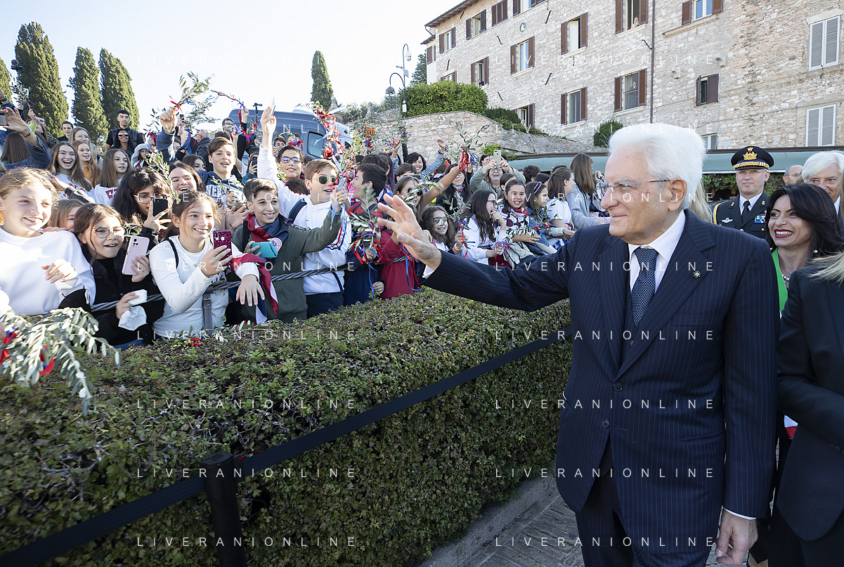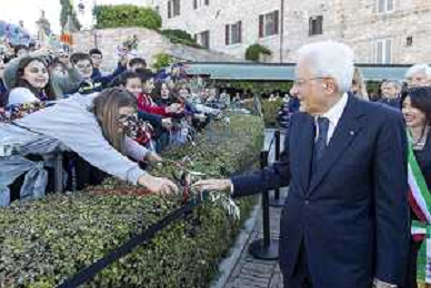 Assisi - Il Presidente della Repubblica Sergio Mattarella al suo