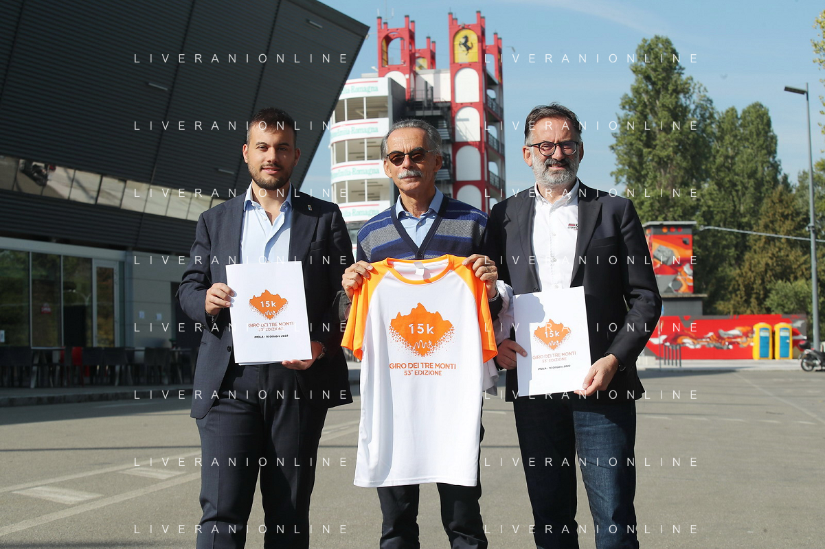 IMOLA 04 10 2022 CONFERENZA STAMPA GARA PODISTICA TRE MONTI NELLA FOTO DA SINISTRA SINDACO MARCO PANIERI ORGANIZZATORE MARINO CASADIO E DIRETTORE DELL'AUTODROMO PIETRO BENVENUTI FOTO GIANNI SANNA-AG ALDO LIVERANI SAS