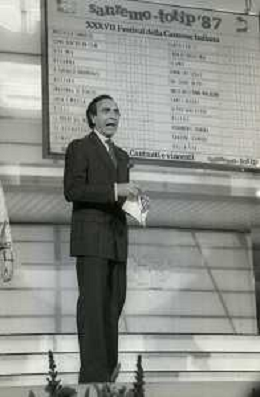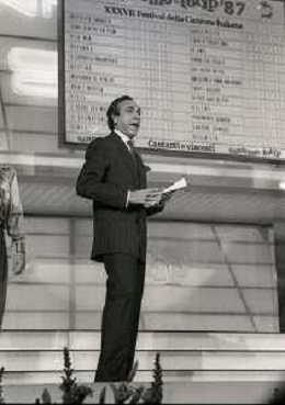 RETROSPETTIVA PIPPO BAUDO PRESENTATORE TELEVISIVO NELLA FOTO PIPPO BAUDO NELL'ANNO 1987 AL FESTIVAL DI SANREMO AG ALDO LIVERANI SAS