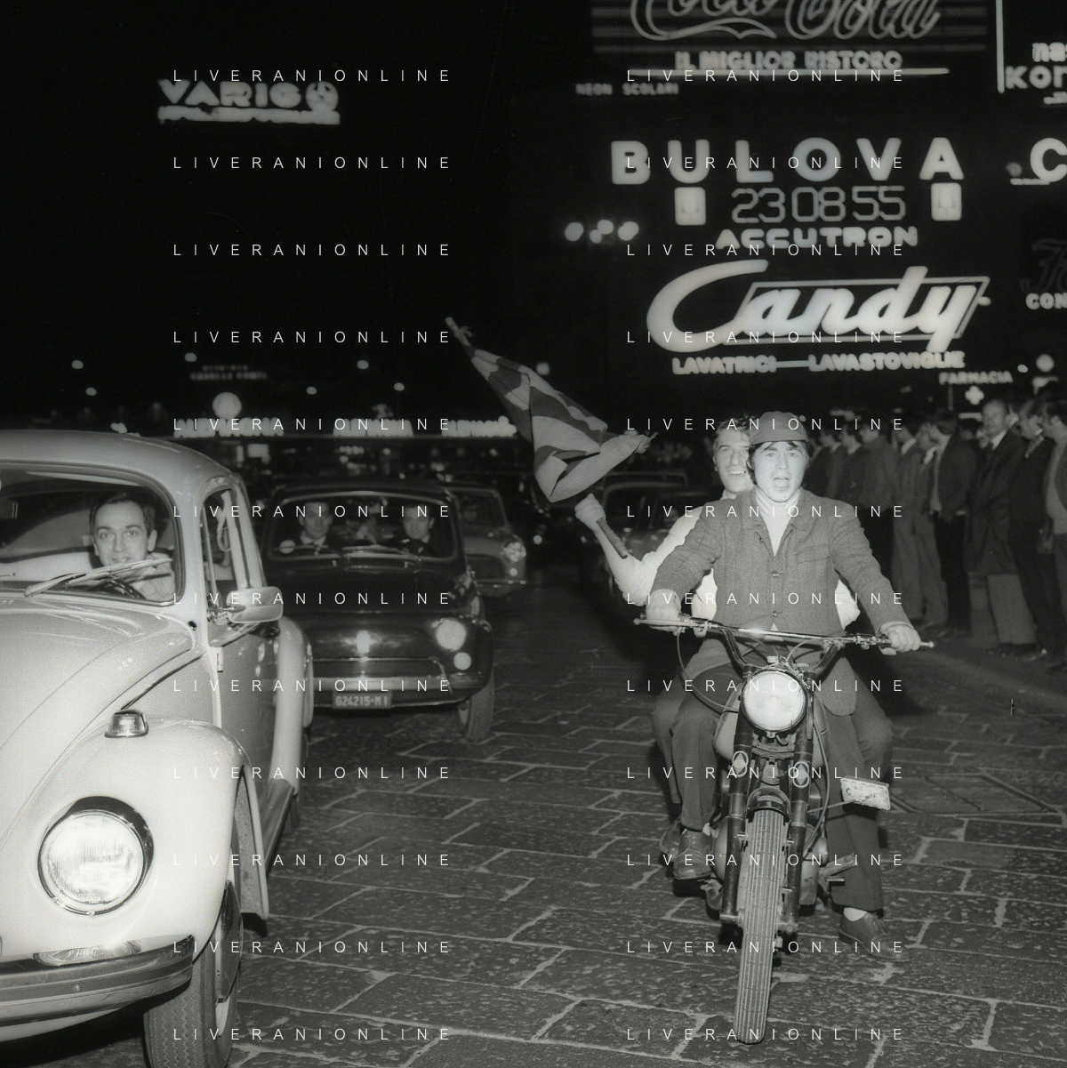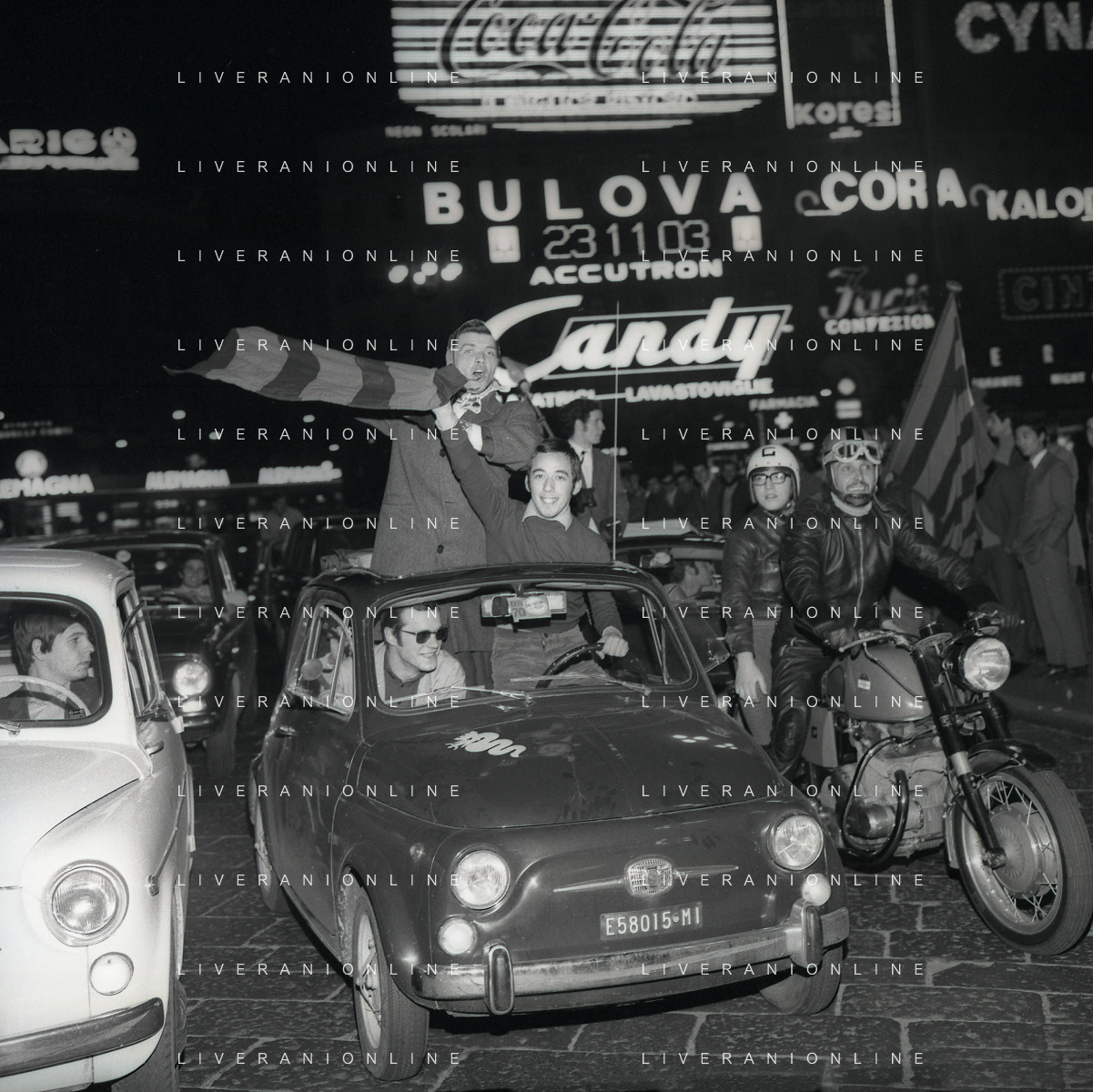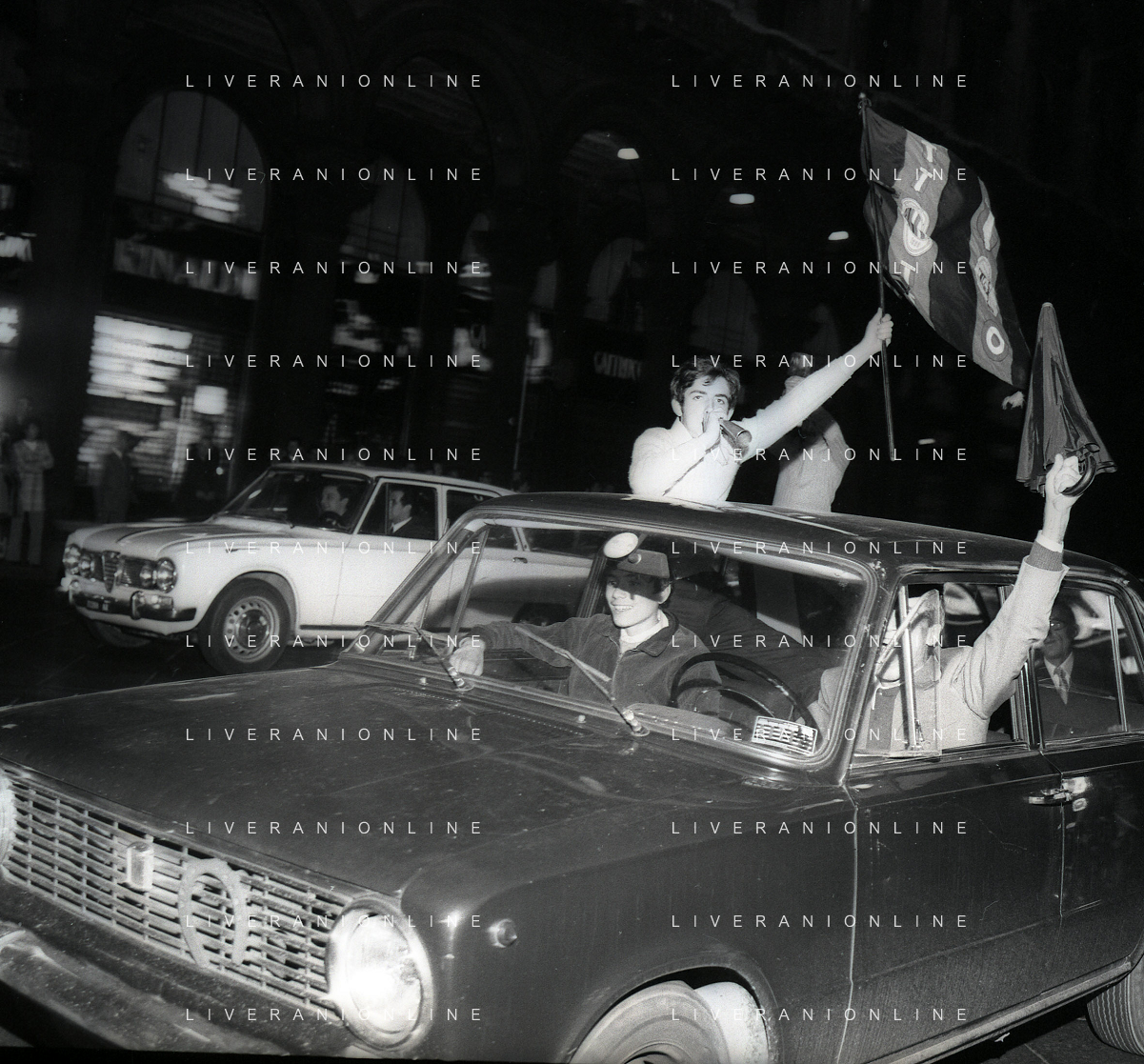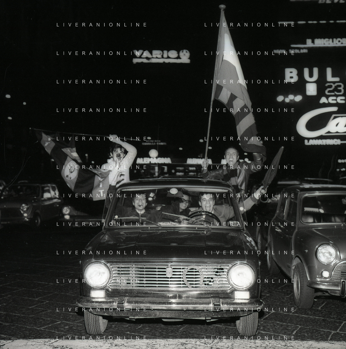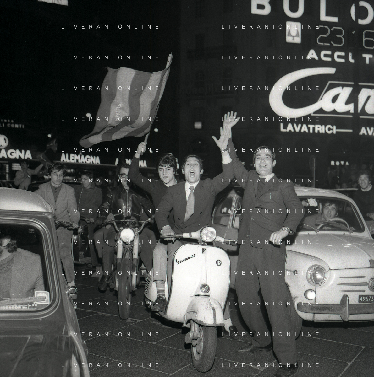 1969 MILANO FESTEGGIAMENTO DEI TIFOSI DEL MILAN CALCIO PER LE VIE DEL CENTRO DI MILANO PER LA VITTORIA DELLA COPPA INTERCONTINENTALE AG ALDO LIVERANI SAS