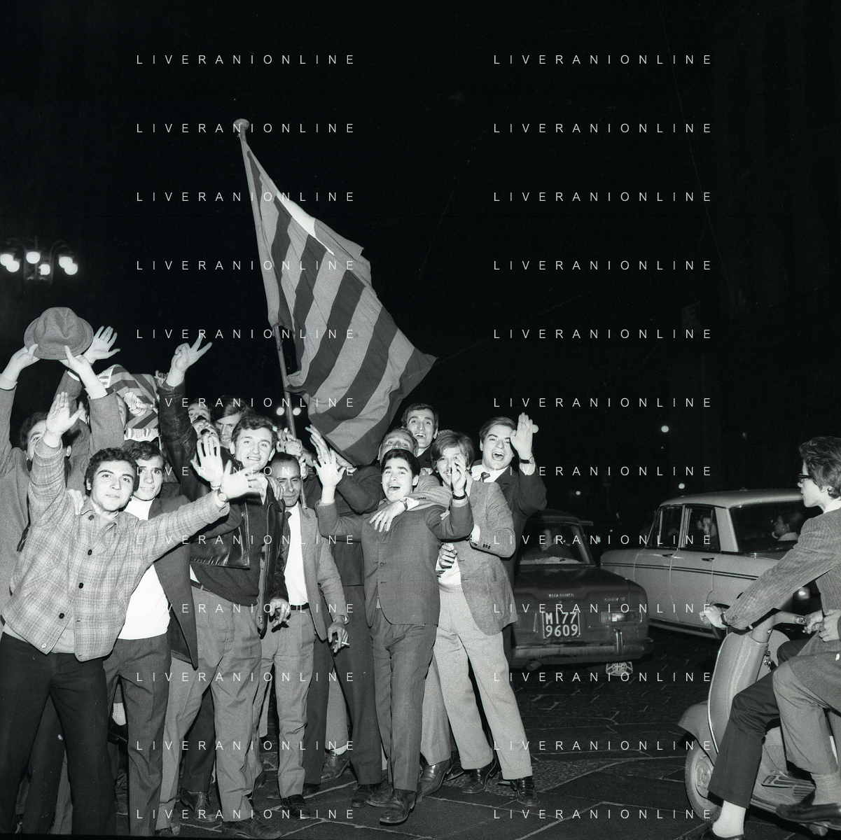 1969 MILANO FESTEGGIAMENTO DEI TIFOSI DEL MILAN CALCIO PER LE VI