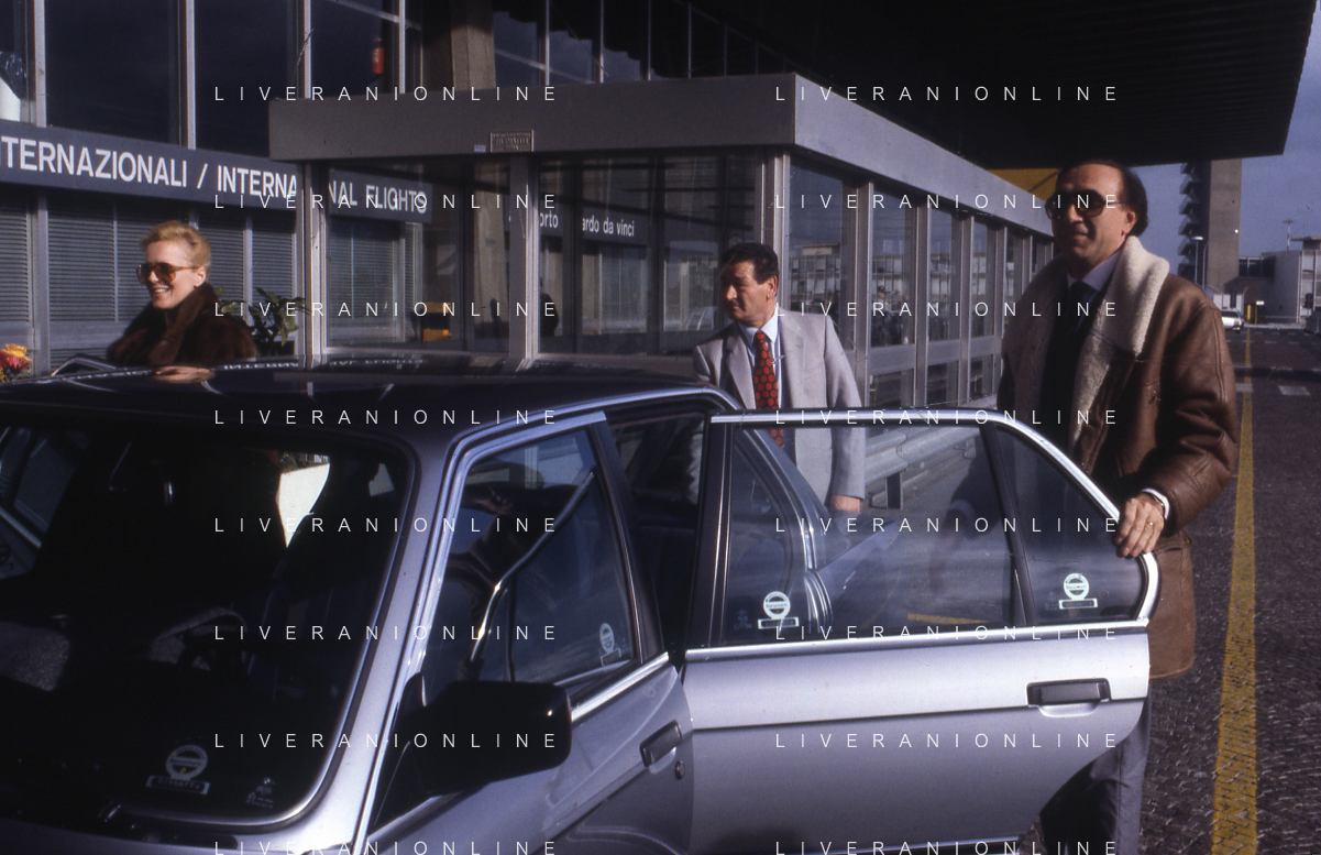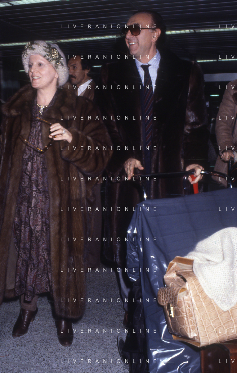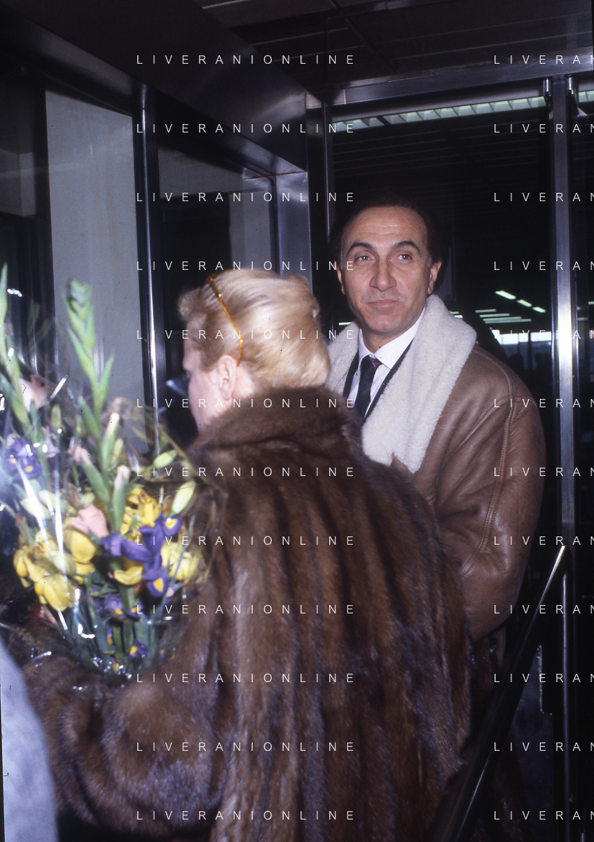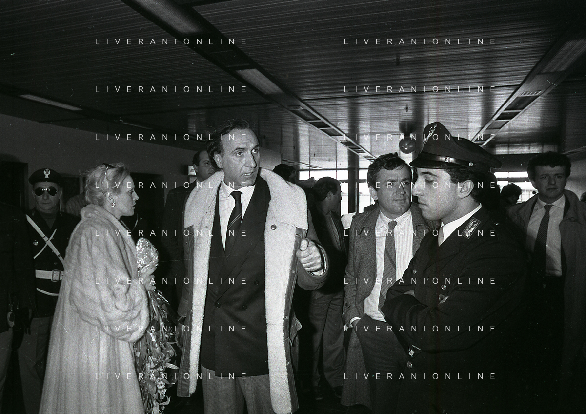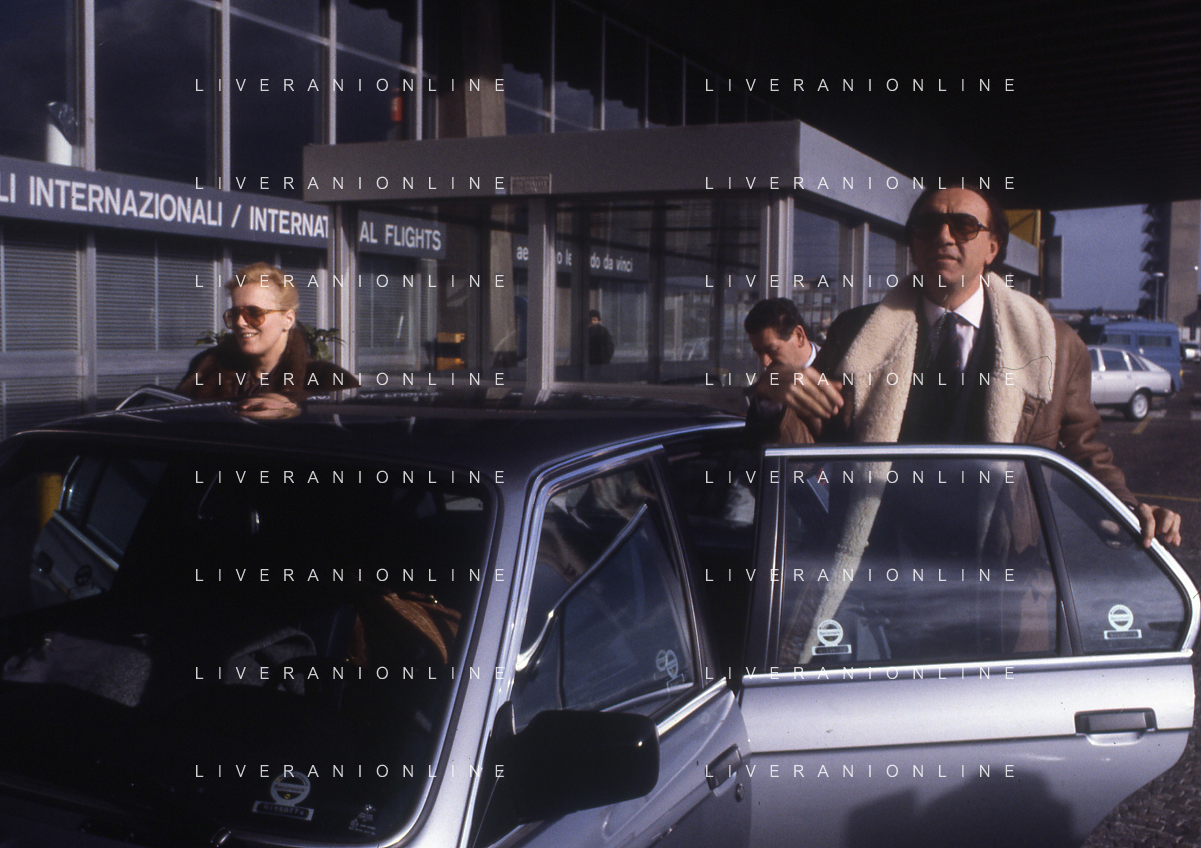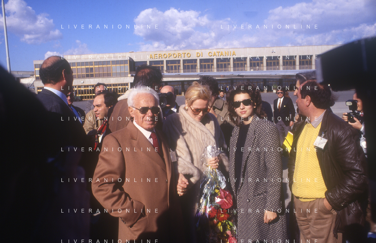 RETROSPETTIVA PIPPO BAUDO PRESENTATORE TELEVISIVO NELLA FOTO PIPPO BAUDO NELL'ANNO 1986 A MILITELLO VAL DI CATANIA PER IL MATRIMONIO CON KATIA RICCIARELLI IL SUO ARRIVO IN AEROPORTO AG ALDO LIVERANI SAS