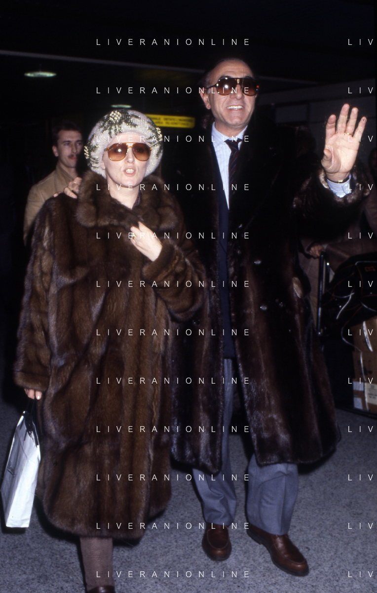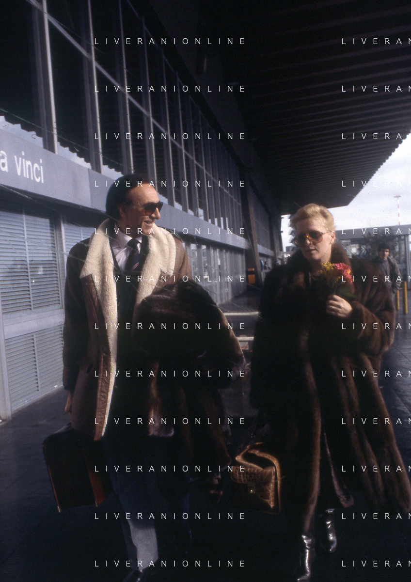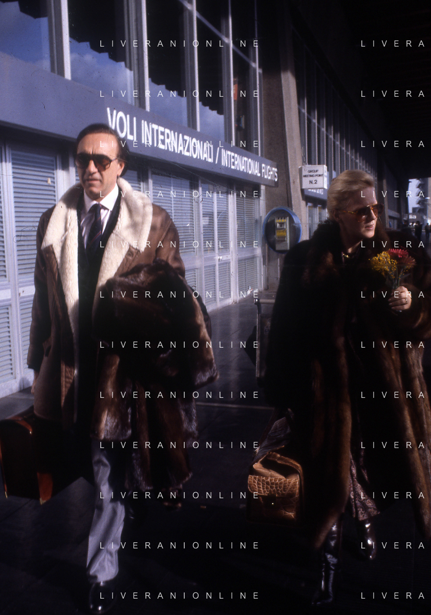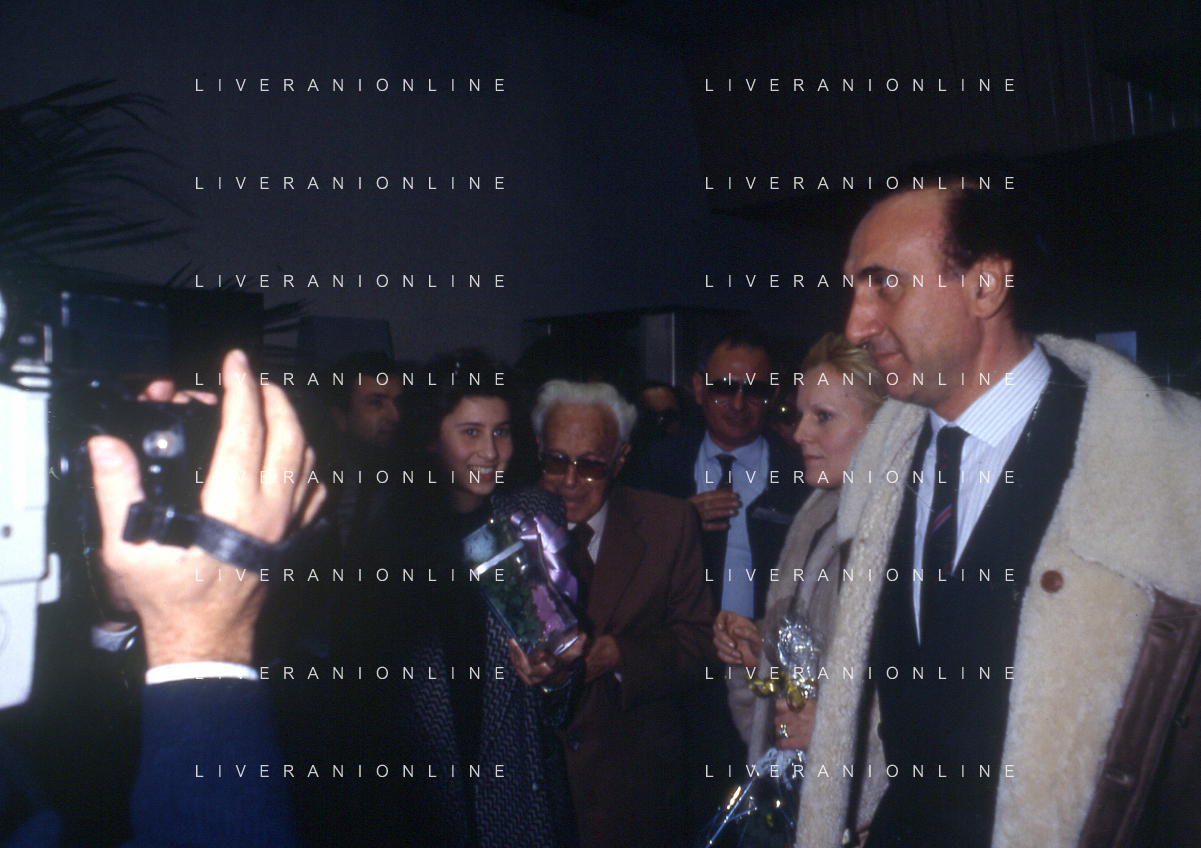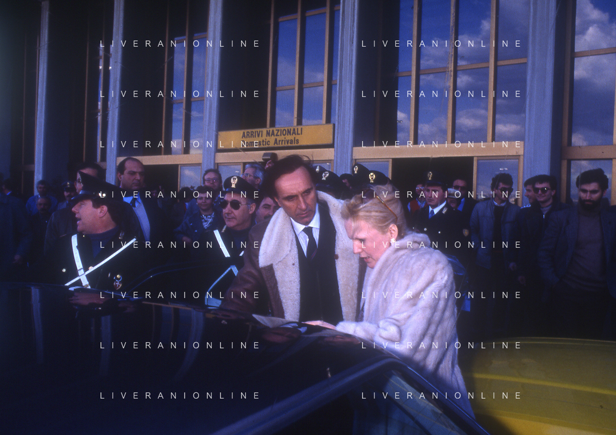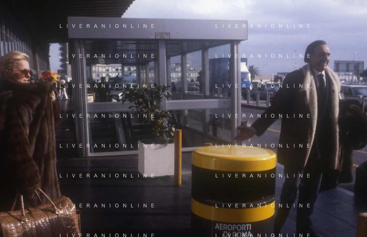 RETROSPETTIVA PIPPO BAUDO PRESENTATORE TELEVISIVO NELLA FOTO PIPPO BAUDO NELL'ANNO 1986 A MILITELLO VAL DI CATANIA PER IL MATRIMONIO CON KATIA RICCIARELLI IL SUO ARRIVO IN AEROPORTO AG ALDO LIVERANI SAS