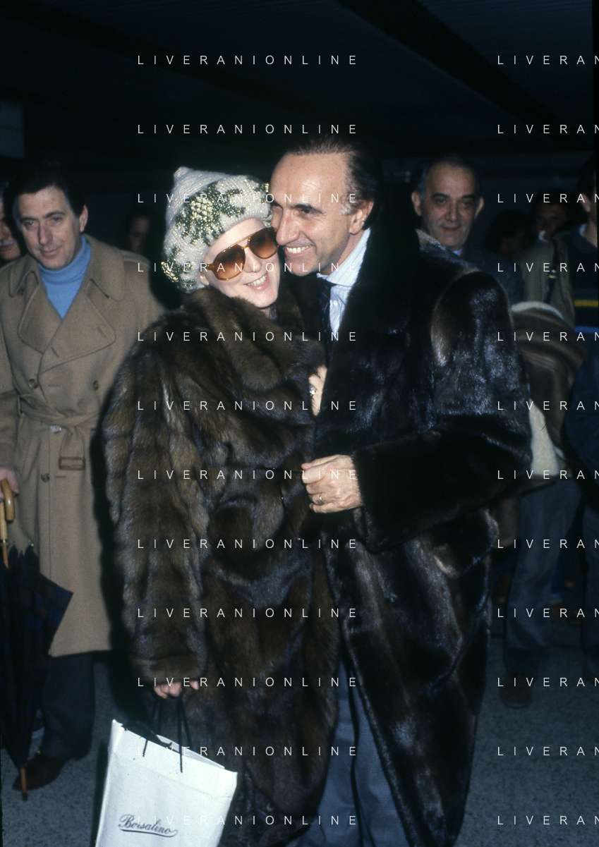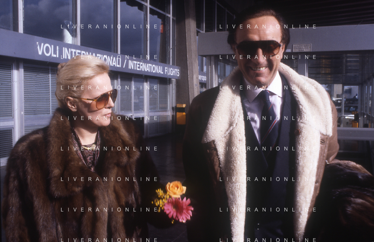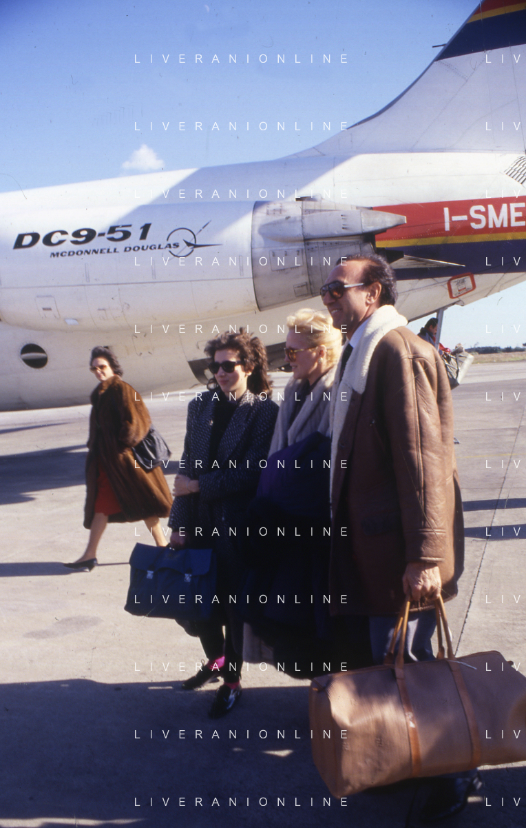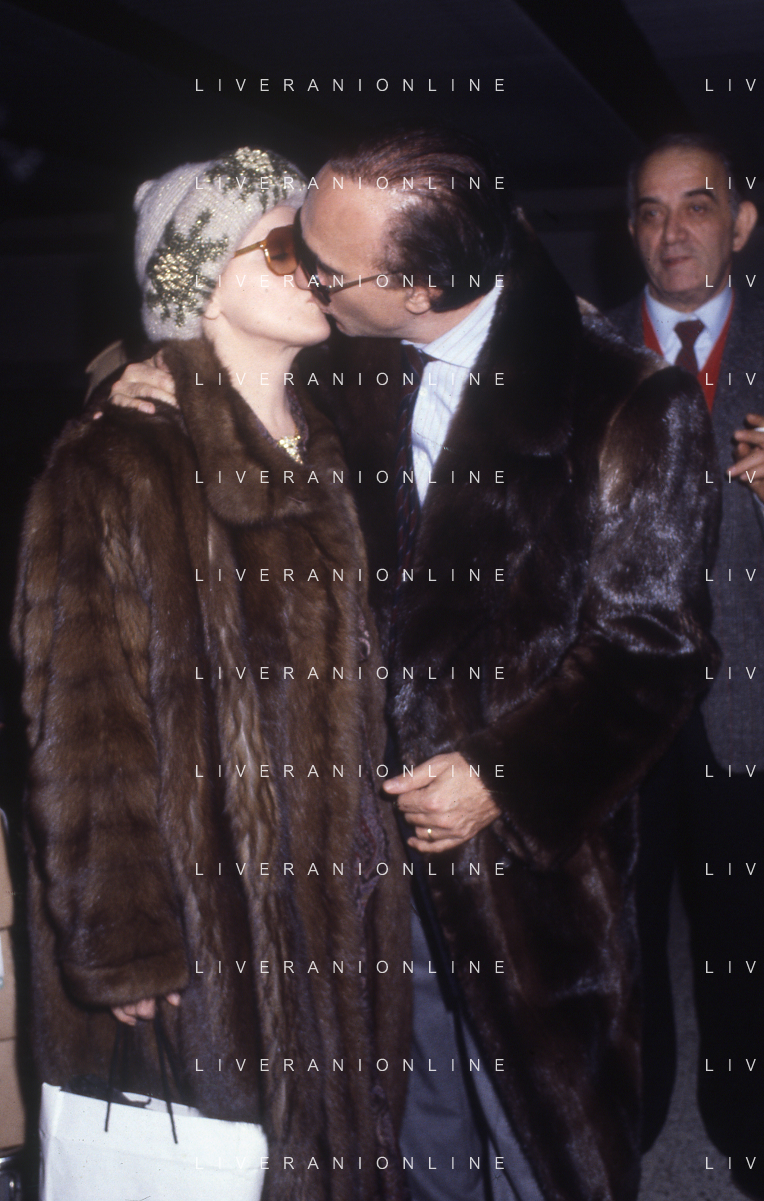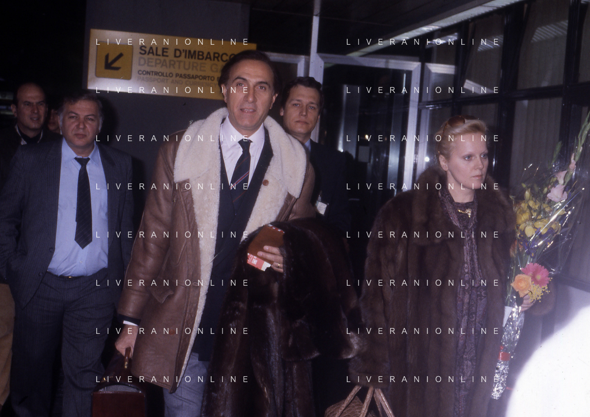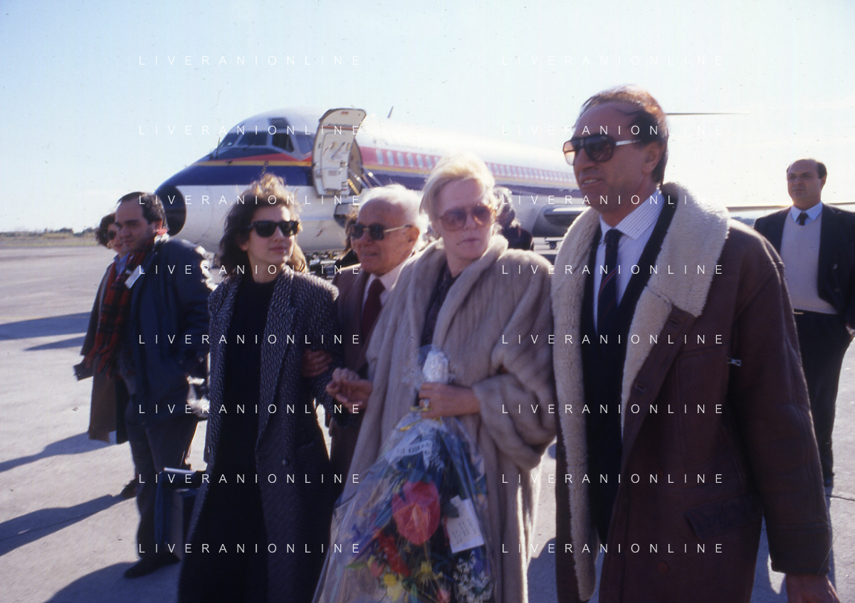 RETROSPETTIVA PIPPO BAUDO PRESENTATORE TELEVISIVO NELLA FOTO PIPPO BAUDO NELL'ANNO 1986 A MILITELLO VAL DI CATANIA PER IL MATRIMONIO CON KATIA RICCIARELLI IL SUO ARRIVO IN AEROPORTO AG ALDO LIVERANI SAS