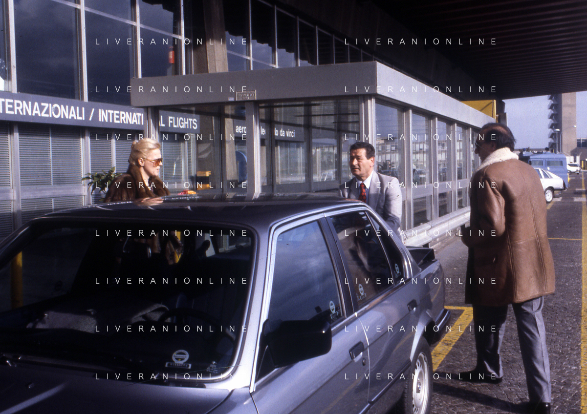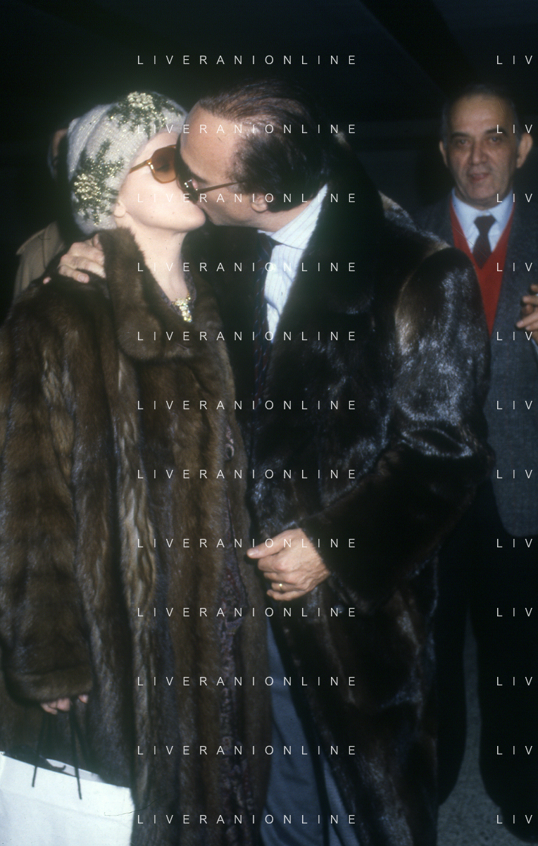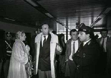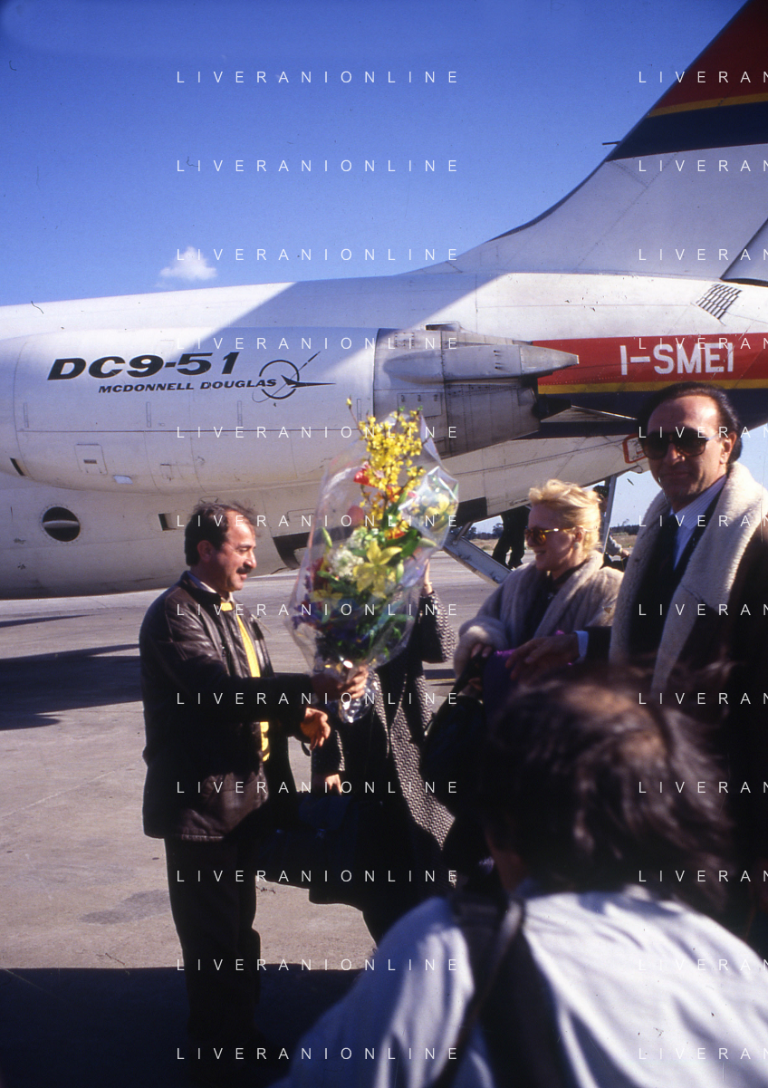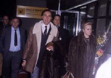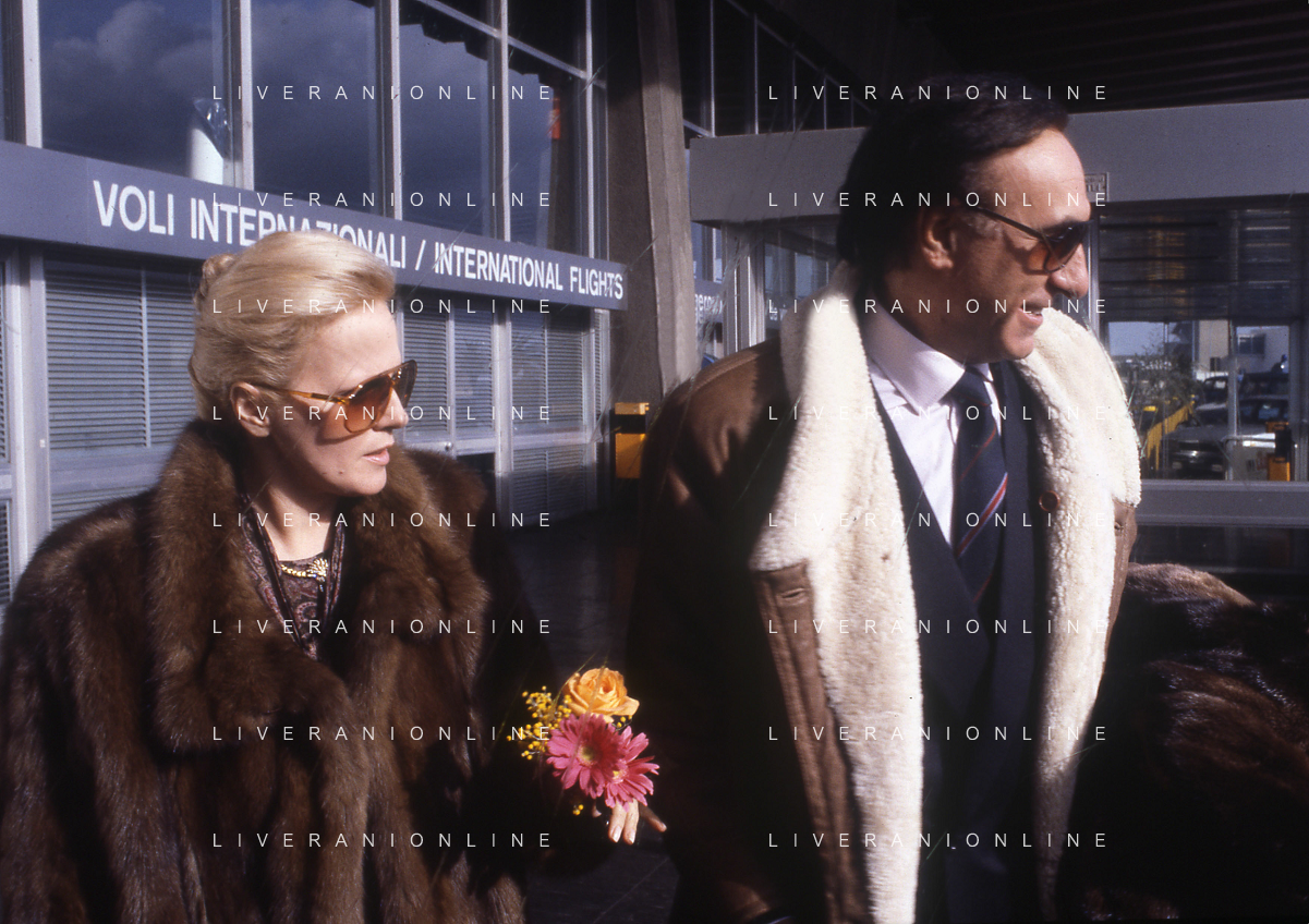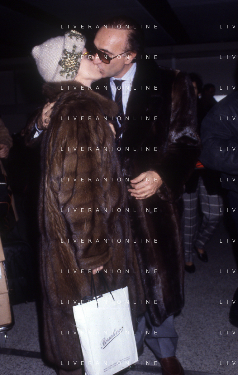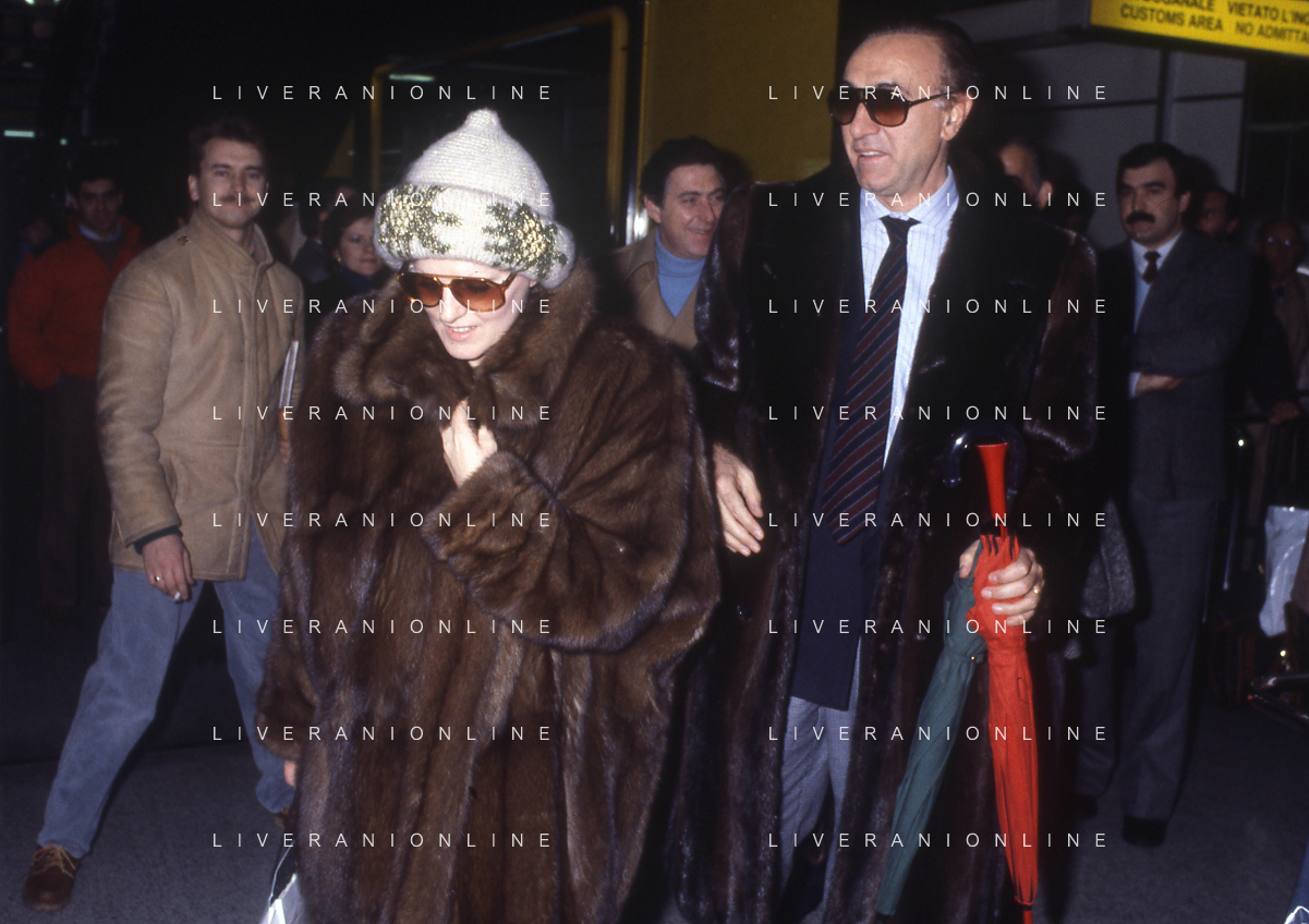 RETROSPETTIVA PIPPO BAUDO PRESENTATORE TELEVISIVO NELLA FOTO PIPPO BAUDO NELL'ANNO 1986 A MILITELLO VAL DI CATANIA PER IL MATRIMONIO CON KATIA RICCIARELLI IL SUO ARRIVO IN AEROPORTO AG ALDO LIVERANI SAS