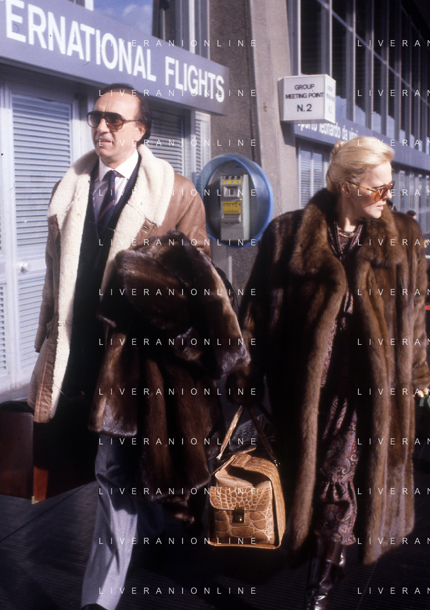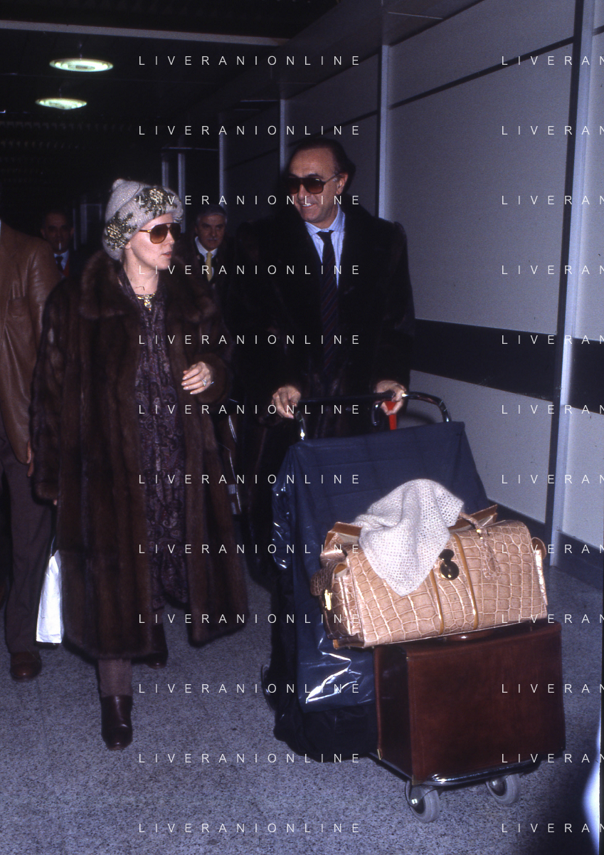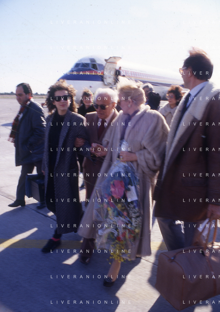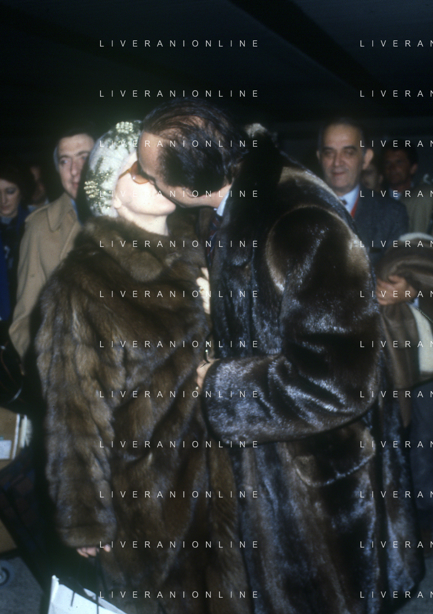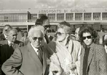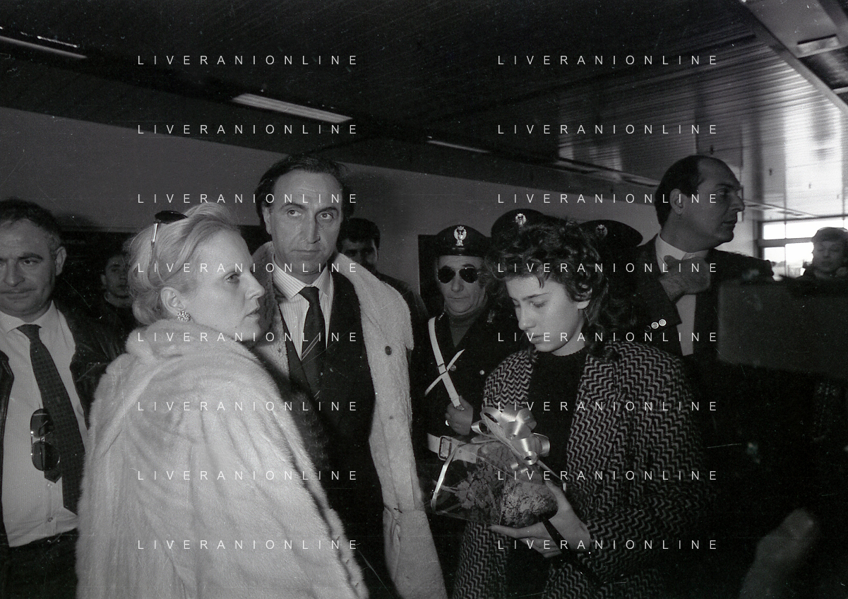 RETROSPETTIVA PIPPO BAUDO PRESENTATORE TELEVISIVO NELLA FOTO PIPPO BAUDO NELL'ANNO 1986 A MILITELLO VAL DI CATANIA PER IL MATRIMONIO CON KATIA RICCIARELLI IL SUO ARRIVO IN AEROPORTO AG ALDO LIVERANI SAS