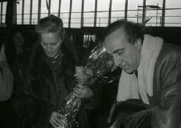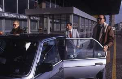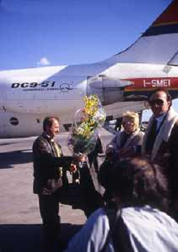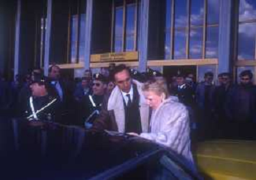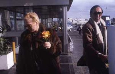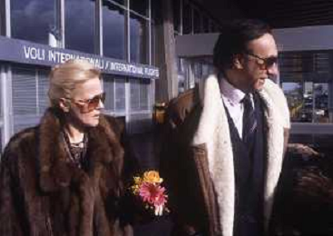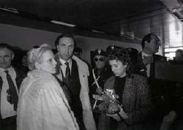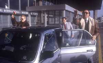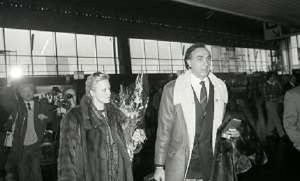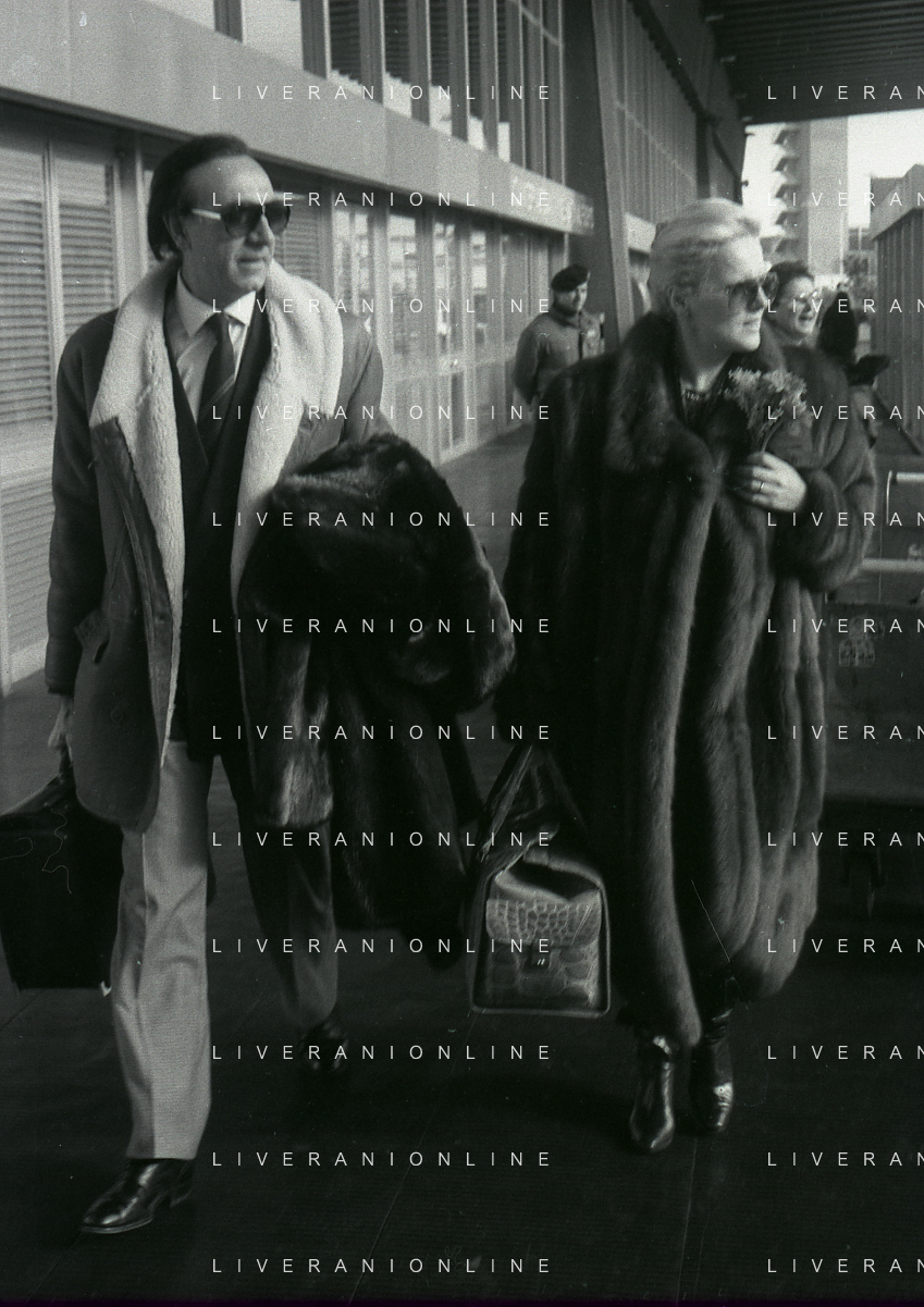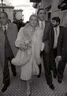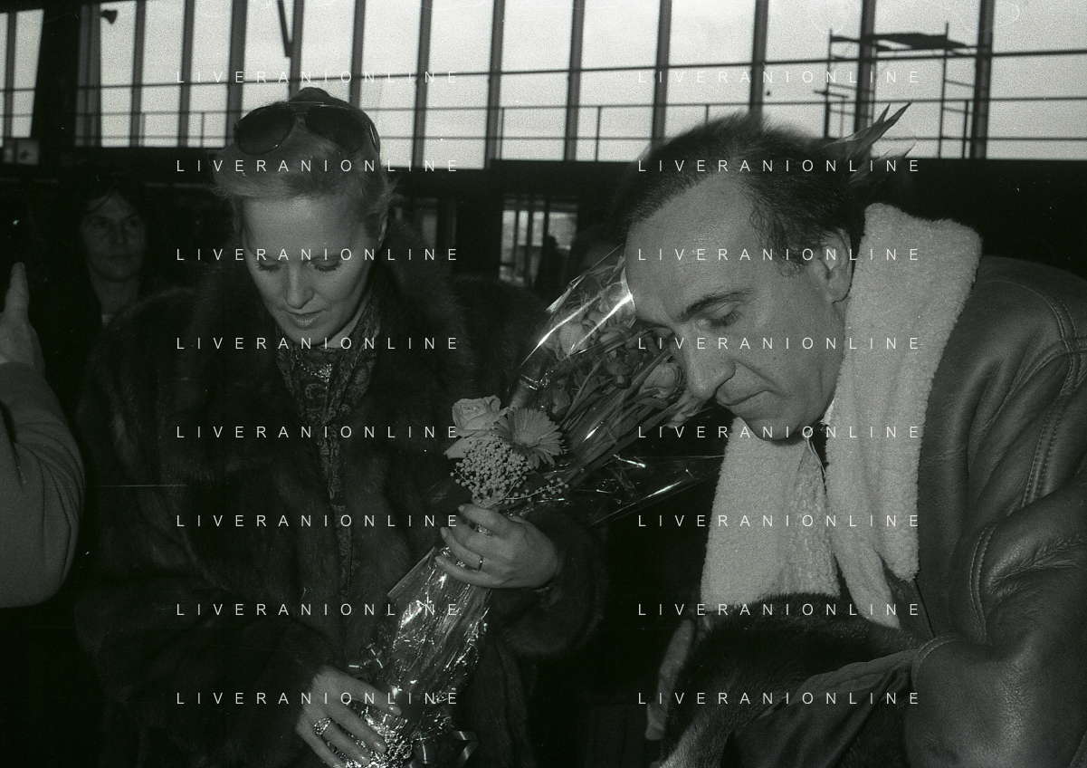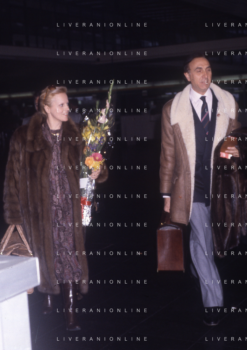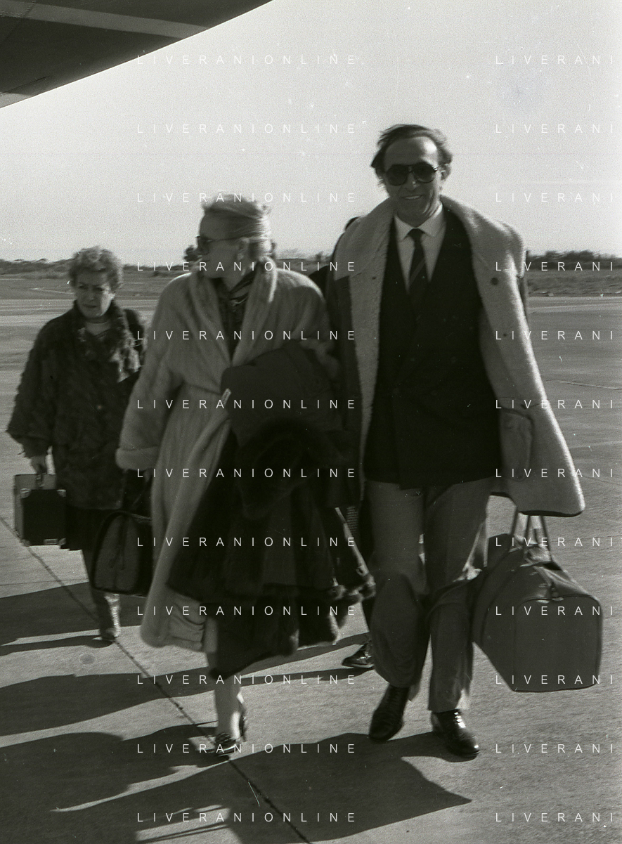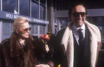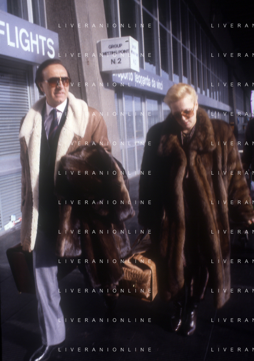 RETROSPETTIVA PIPPO BAUDO PRESENTATORE TELEVISIVO NELLA FOTO PIPPO BAUDO NELL'ANNO 1986 A MILITELLO VAL DI CATANIA PER IL MATRIMONIO CON KATIA RICCIARELLI IL SUO ARRIVO IN AEROPORTO AG ALDO LIVERANI SAS
