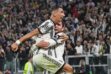 Torino 05.10.2022 Stadio Allianz Stadium ©Manuela Viganti/Agenzia Aldo Liverani Juventus vs Maccabi Haifa Champions League 2022/2023 Gruppo H Giornata 3 di 6 Nella foto: esultanza dusan vlahovic e angel di maria dopo il gol ©/AGENZIA ALDO LIVERANI SAS