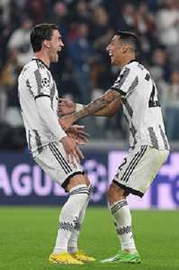 Torino 05.10.2022 Stadio Allianz Stadium ©Manuela Viganti/Agenzia Aldo Liverani Juventus vs Maccabi Haifa Champions League 2022/2023 Gruppo H Giornata 3 di 6 Nella foto: esultanza dusan vlahovic e angel di maria dopo il gol ©/AGENZIA ALDO LIVERANI SAS