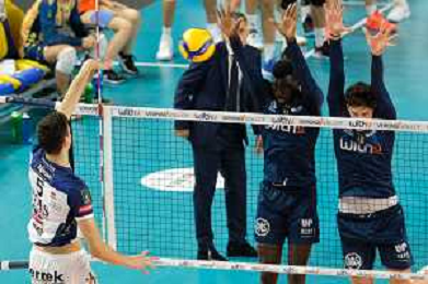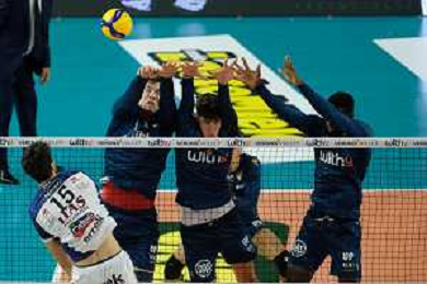 Block by Noumory Keita - WithU Verona during the match between WithU Verona and ITAS Trentino valid for a second day of the Superlega Italian volley men championship on October 8, 2022 at Pala AGSM-AIM in Verona, Italy FOTO ROBERTO TOMMASINI-AG ALDO LIVERANI SAS