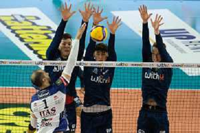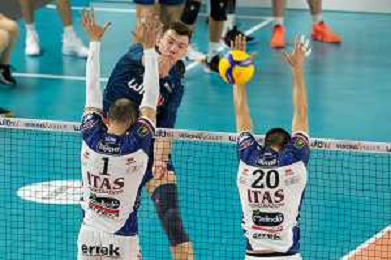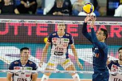 Bump of Daniele Lavia - ITAS Trentino during the match between WithU Verona and ITAS Trentino valid for a second day of the Superlega Italian volley men championship on October 8, 2022 at Pala AGSM-AIM in Verona, Italy FOTO ROBERTO TOMMASINI-AG ALDO LIVERANI SAS
