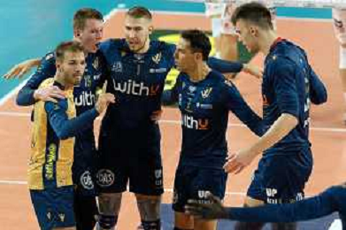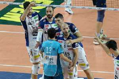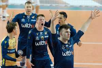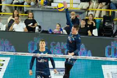 Exultation of WithU Verona during the match between WithU Verona and ITAS Trentino valid for a second day of the Superlega Italian volley men championship on October 8, 2022 at Pala AGSM-AIM in Verona, Italy FOTO ROBERTO TOMMASINI-AG ALDO LIVERANI SAS