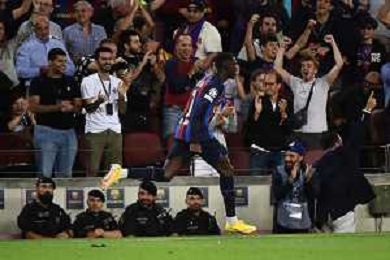 Ousmane Dembele (Barcellona) esulta dopo il gol dell'1 a 0 Barcellona vs Inter Barcellona (SPA) 12-10-2022 Stadio Camp Nou UEFA Champions League fase a gironi gruppo C - 4a giornata foto Roberto Garavaglia/ag. Aldo Liverani sas / AGENZIA ALDO LIVERANI SAS