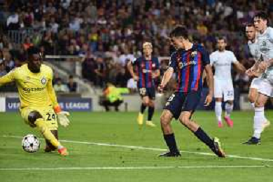 Andre' Onana (Inter) anticipa Robert Lewandowski (Barcellona) Barcellona vs Inter Barcellona (SPA) 12-10-2022 Stadio Camp Nou UEFA Champions League fase a gironi gruppo C - 4a giornata foto Roberto Garavaglia/ag. Aldo Liverani sas / AGENZIA ALDO LIVERANI SAS