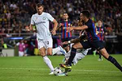 Edin Dzeko (Inter) occasione da gol Barcellona vs Inter Barcellona (SPA) 12-10-2022 Stadio Camp Nou UEFA Champions League fase a gironi gruppo C - 4a giornata foto Roberto Garavaglia/ag. Aldo Liverani sas / AGENZIA ALDO LIVERANI SAS