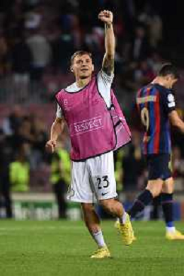 Robin Gosens (Inter) esulta dopo il gol del 3 a 2 Barcellona vs Inter Barcellona (SPA) 12-10-2022 Stadio Camp Nou UEFA Champions League fase a gironi gruppo C - 4a giornata foto Roberto Garavaglia/ag. Aldo Liverani sas / AGENZIA ALDO LIVERANI SAS