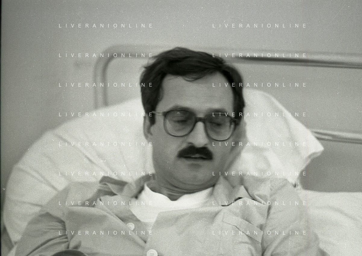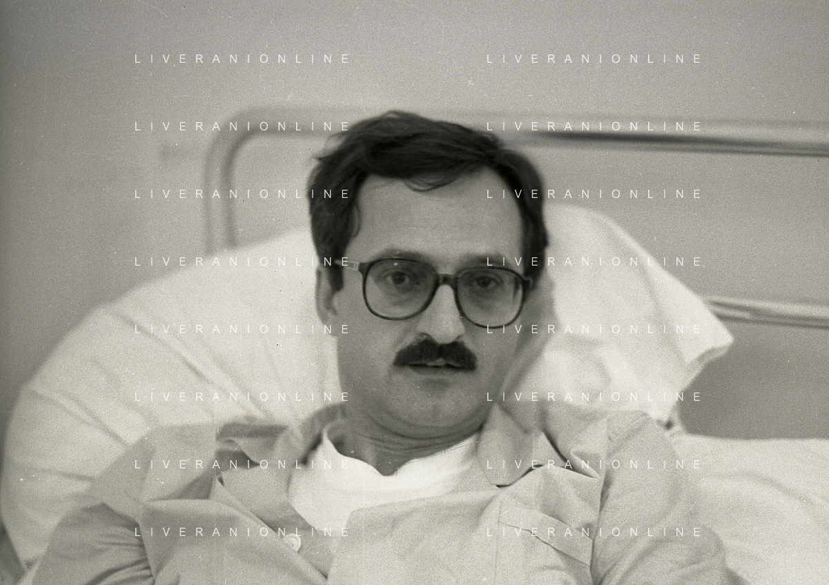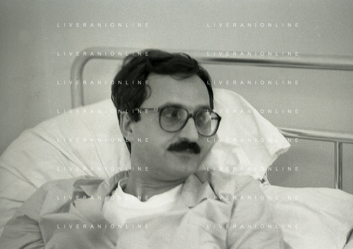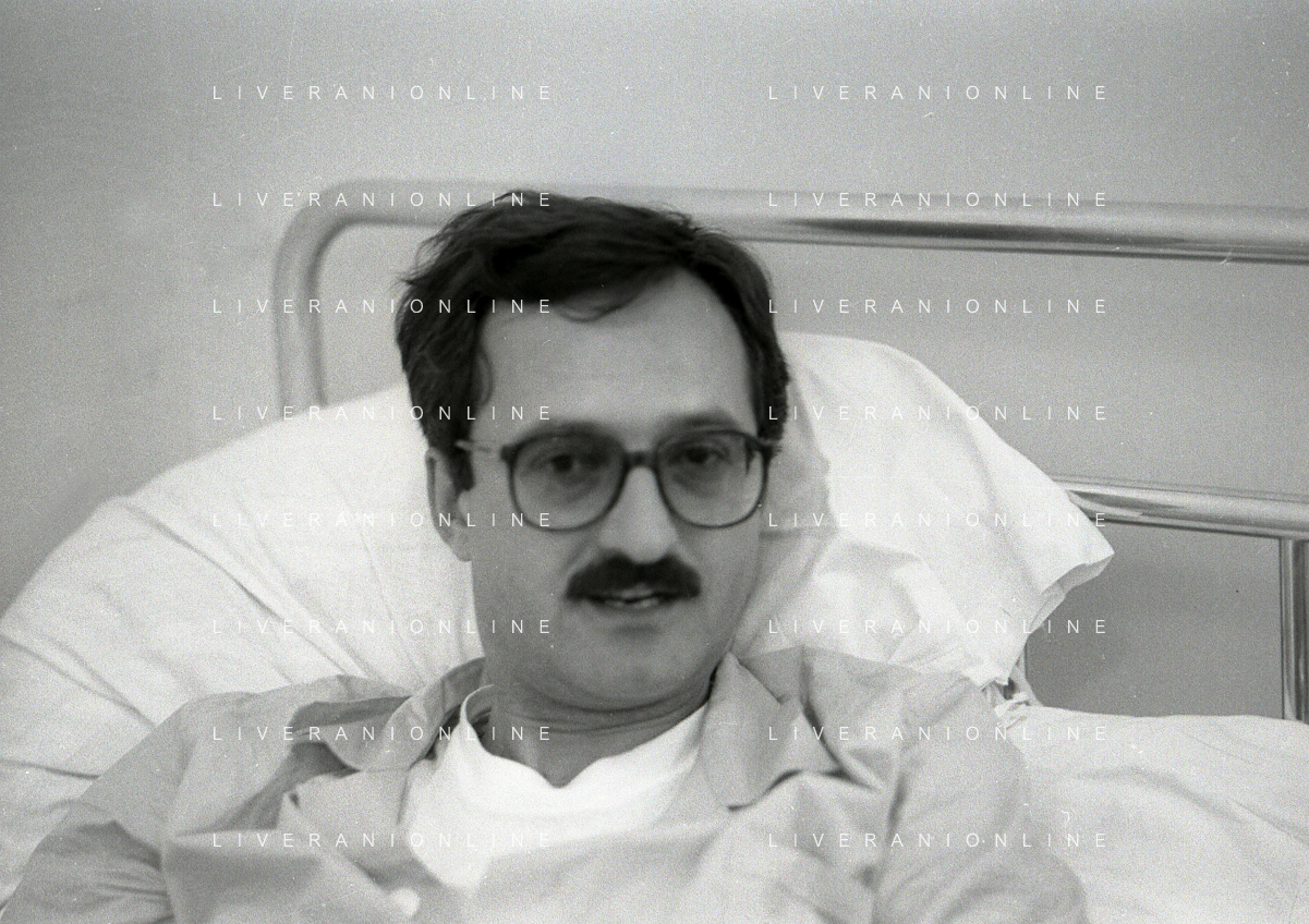 1985 TRAPANI STRAGE DI PIZZOLUNGO ATTENTATO AL PROCURATORE DI TRAPANI CARLO PALERMO NELA FOTO IL PROCURATORE DI TRAPANI CARLO PALERMO IN OSPEDALE AG ALDO LIVERANI SAS
