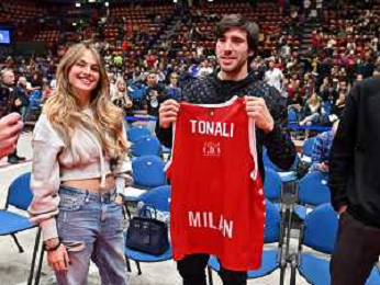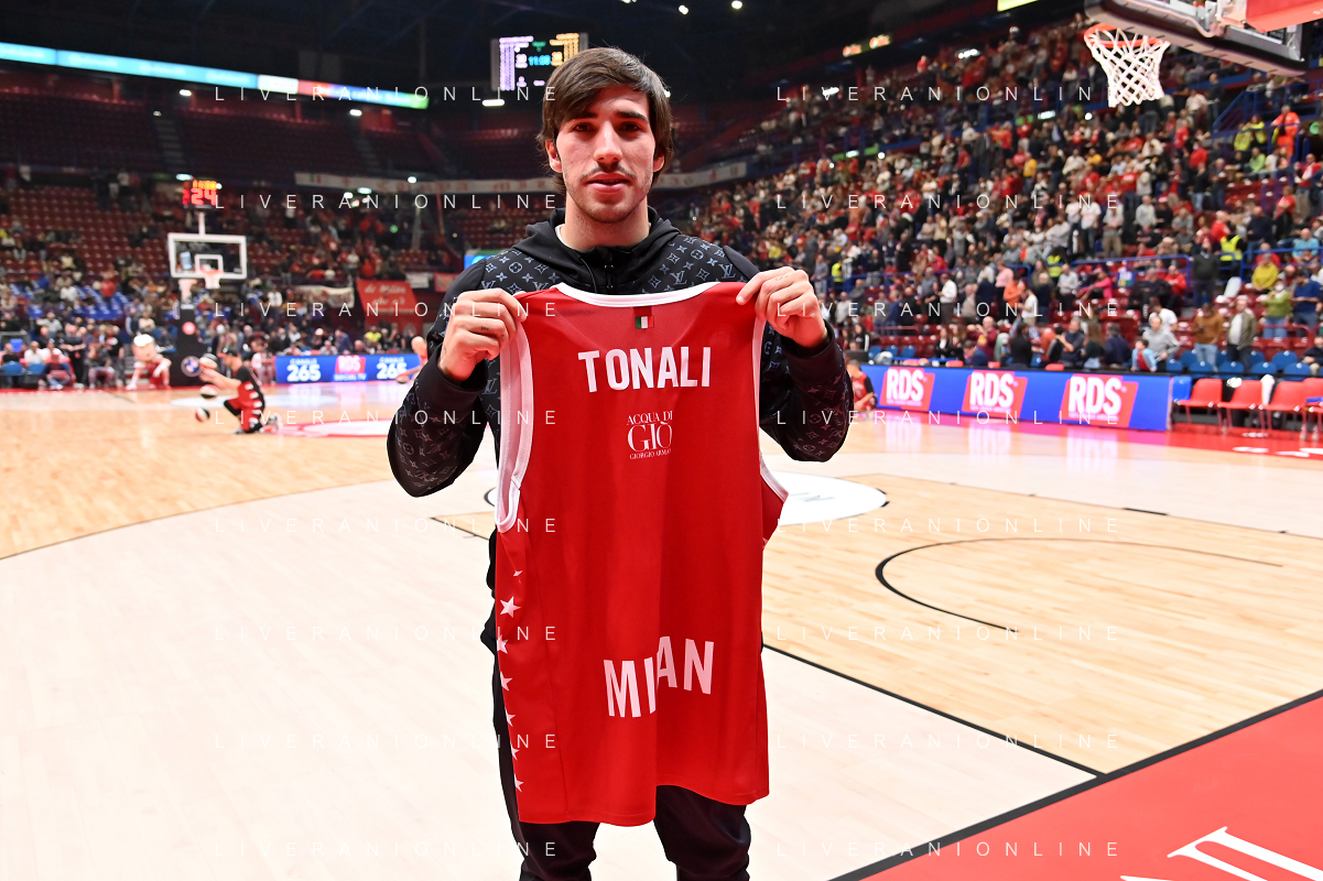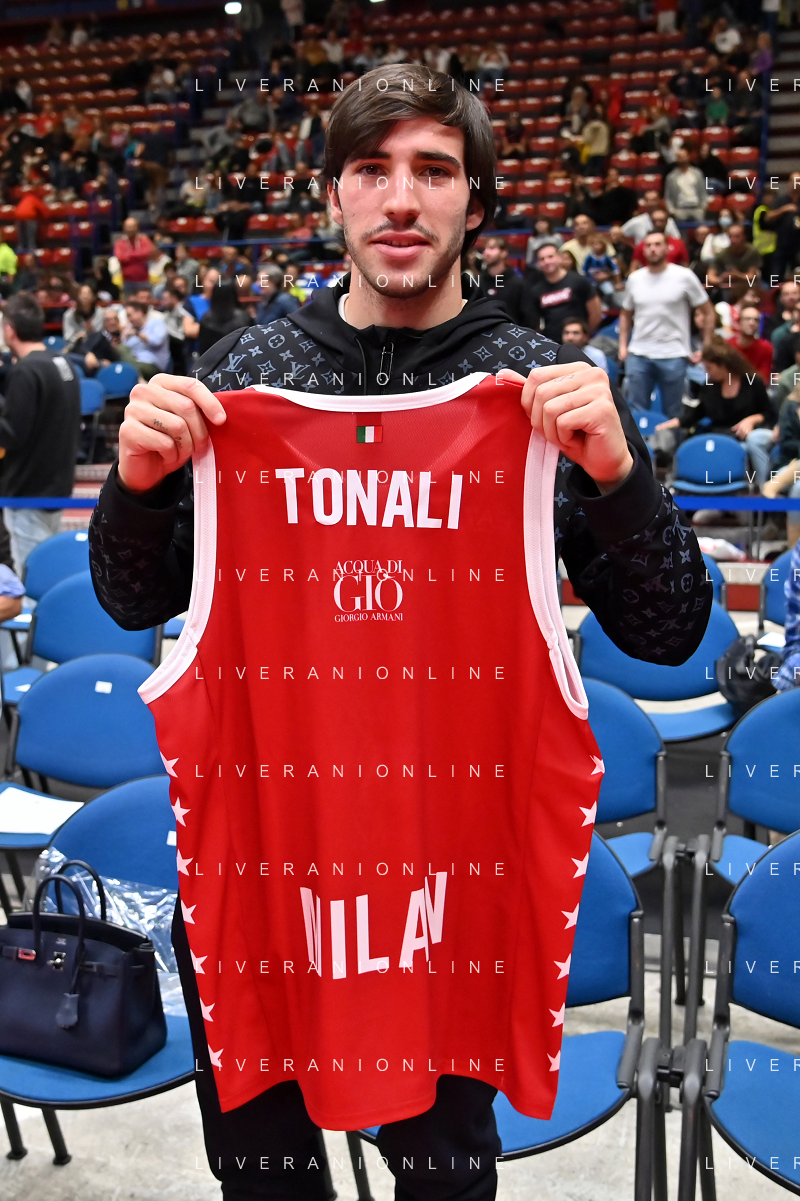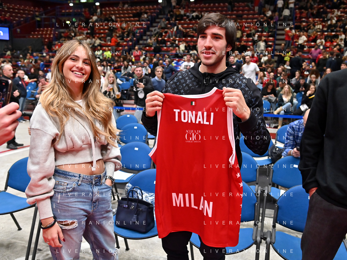 TVRG Sandro Tonali giocatore del Milan presente a bordocampo EA7 Emporio Armani Milano vs ALBA Berlino Assago (MI) 14-10-2022 Mediolanum Forum Turkish Airlines Euroleague 2a giornata regular season foto Roberto Garavaglia/ag. Aldo Liverani sas/ AGENZIA ALDO LIVERANI SAS