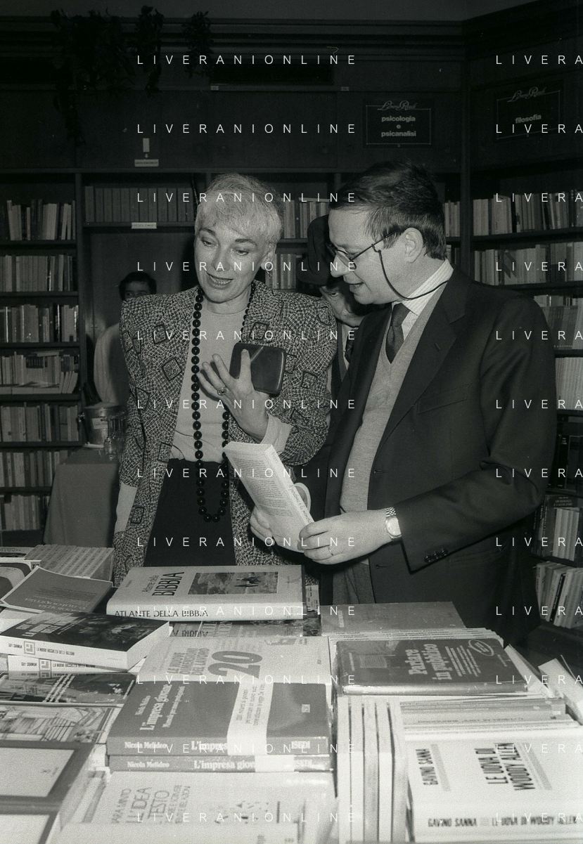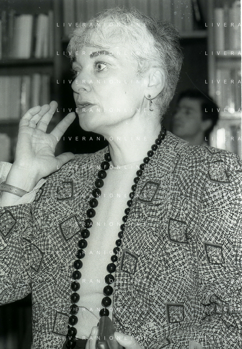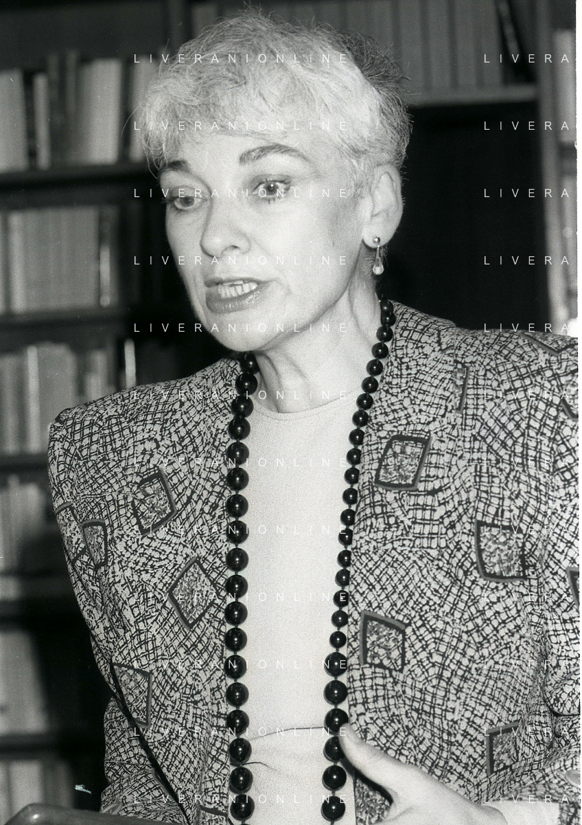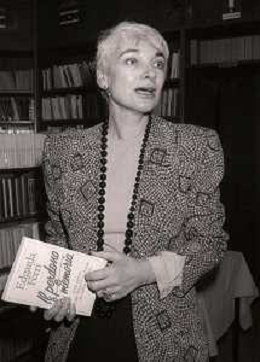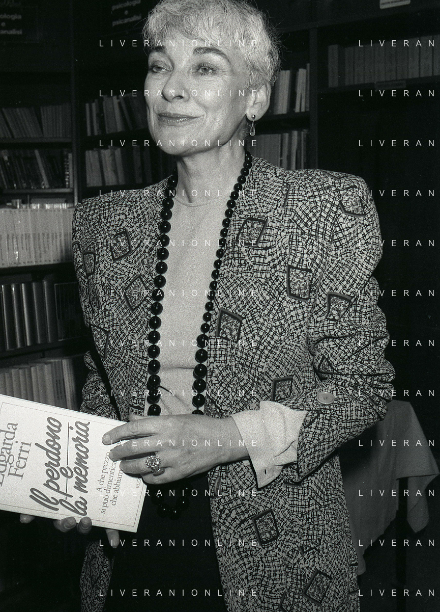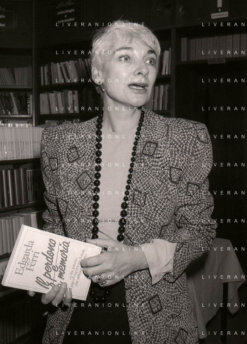 1988 MILANO PRESENTAZIONE DEL LIBRO “IL PERDONO E LA MEMORIA“ NELLA FOTO EDGARDA FERRI SCRITTRICE A MILANO NELL'ANNO 1988 PRESENTA IL SUO LIBRO“IL PERDONO E LA MEMORIA“ AG ALDO LIVERANI SAS