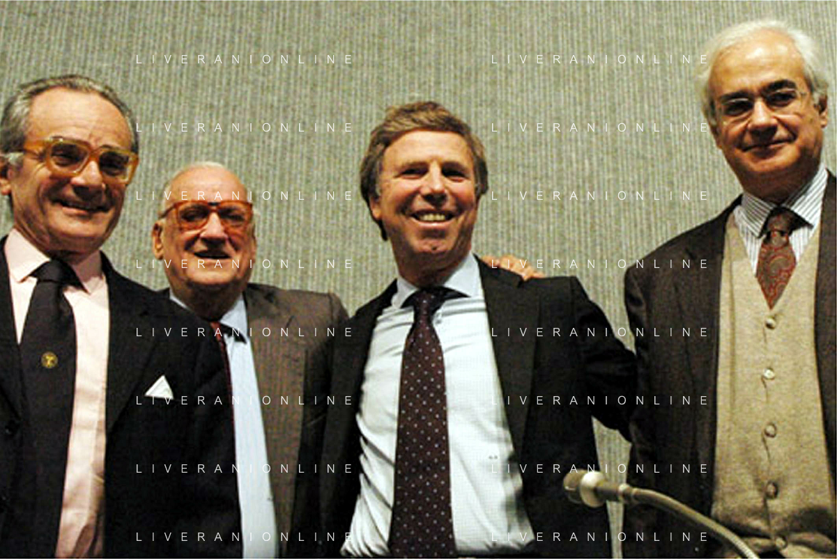 Genova, 02/12/2005 Presentazione ai tifosi Fondazione Genoa Nella foto: Carbone-Biondi-Preziosi-D'Angelo gli autori della Fondazione ph: alessandro pintimalli / ag aldo liverani s.a.s.