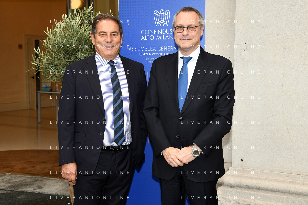 TVRG Assemblea Confindustria Legnano nella foto Diego Rossetti SX presidente di Fratelli Rossetti e presidente di Confindustria Alto Milanese e Carlo Bonomi DX presidente Confindustria Legnano (MI) 24-10-2022 Assemblea generale di Confindustria Alto Milanese presso il teatro Citta' di Legnano Talisio Tirinnanzi, presente anche Carlo Bonomi presidente nazionale di Confindustria foto Roberto Garavaglia/ag. Aldo Liverani sas/ AGENZIA ALDO LIVERANI SAS