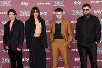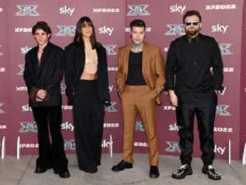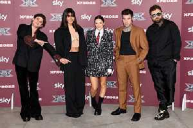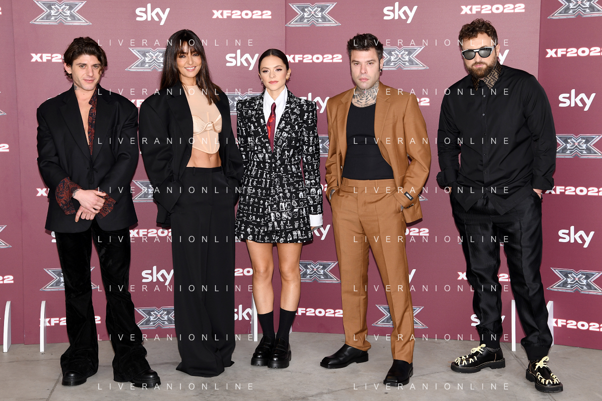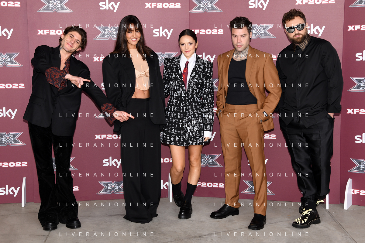 TVRG Photocall X-Factor nella foto il cast dell'edizione 2022 da SX Rkomi, Ambra, Francesca Michielin, Fedez e Dargen D'Amico Assago (MI) 25-10-2022 Photocall in occasione della conferenza stampa di presentazione di X-Factor 2022 foto Roberto Garavaglia/ag. Aldo Liverani sas/AGENZIA ALDO LIVERANI SAS
