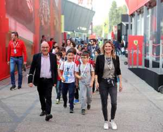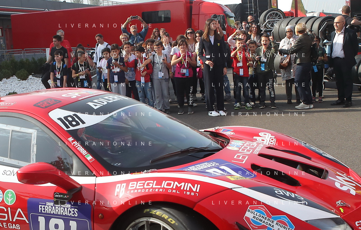 IMOLA 27 10 2022 AUTODROMO ENZO E DINO FERRARI "FERRARI FINALI MONDIALI" LE CLASSI VINCITRICI DEL CONCORSO l'AUTODROMO:COME TI PIACEREBBE UTILIZZARLO IN VISITA AL PADDOCK IN OCCASIONE DELLE FINALI MONDIALI FERRARI 2022 NELLA FOTO STUDENTI SALUTANO LE AUTO FERRARI DOPO LA USCITA DALLA PISTA FOTO GIANNI SANNA-AG ALDO LIVERANI SAS
