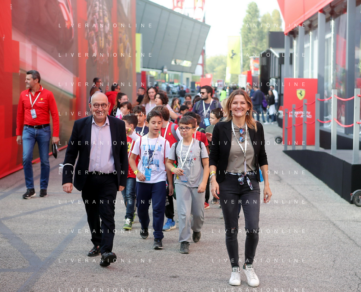 IMOLA 27 10 2022 AUTODROMO ENZO E DINO FERRARI "FERRARI FINALI MONDIALI" LE CLASSI VINCITRICI DEL CONCORSO l'AUTODROMO:COME TI PIACEREBBE UTILIZZARLO IN VISITA AL PADDOCK IN OCCASIONE DELLE FINALI MONDIALI FERRARI 2022 NELLA FOTO ASSESSORE ALLA SCUOLA DI IMOLA FABRIZIO CASTELLARI ASSESSORE AUTODROMO ELENA PENAZZI CON GLI STUDENTI FOTO GIANNI SANNA-AG ALDO LIVERANI SAS