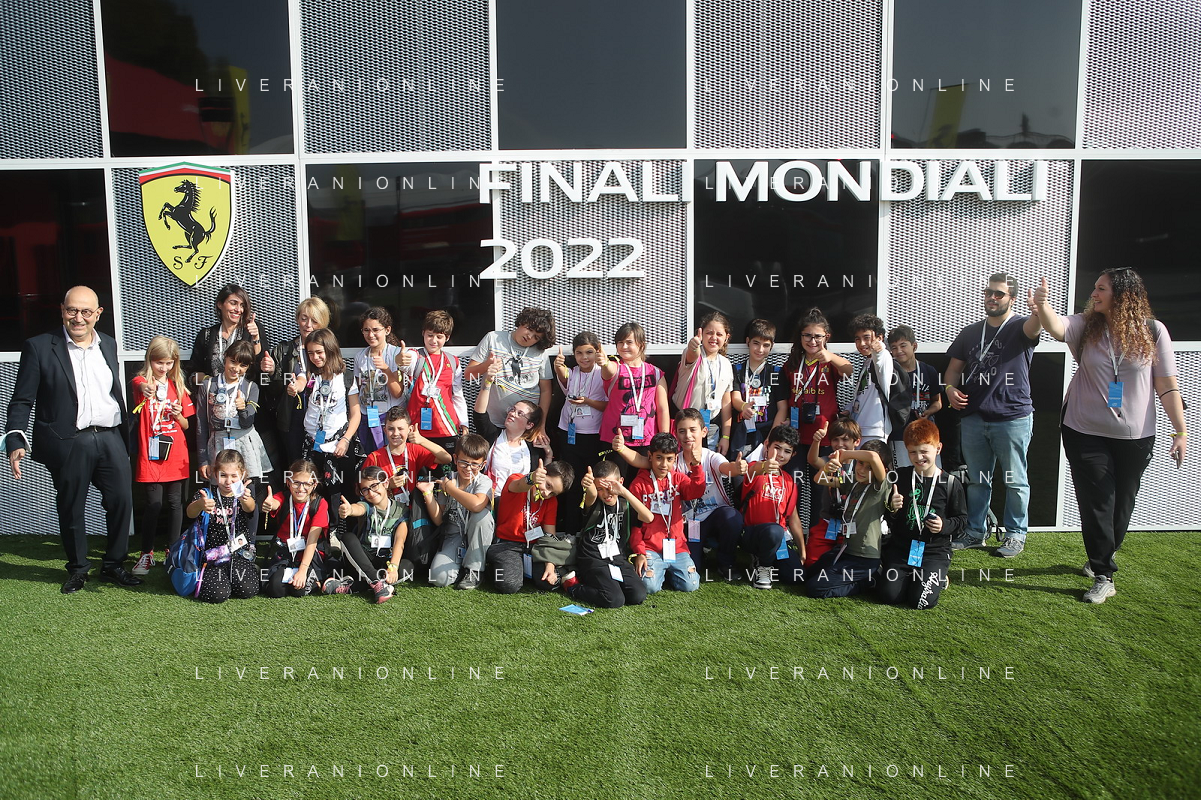 IMOLA 27 10 2022 AUTODROMO ENZO E DINO FERRARI "FERRARI FINALI MONDIALI" LE CLASSI VINCITRICI DEL CONCORSO l'AUTODROMO:COME TI PIACEREBBE UTILIZZARLO IN VISITA AL PADDOCK IN OCCASIONE DELLE FINALI MONDIALI FERRARI 2022 NELLA FOTO FOTO RICORDO FOTO GIANNI SANNA-AG ALDO LIVERANI SAS