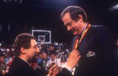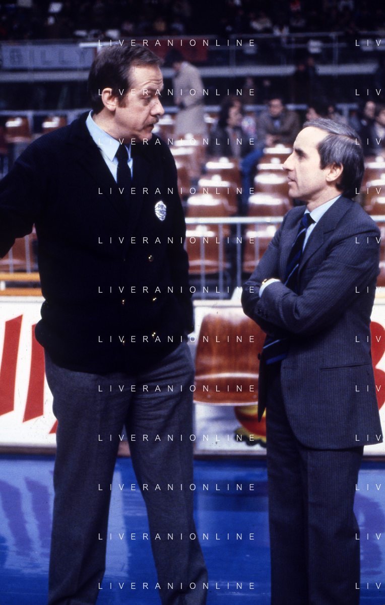 RETROSPETTIVA RICCARDO SALES ALLENATORE BASKET NELLA FOTO RICCARDO SALES CON DAN PETERSON AG ALDO LIVERANI SAS