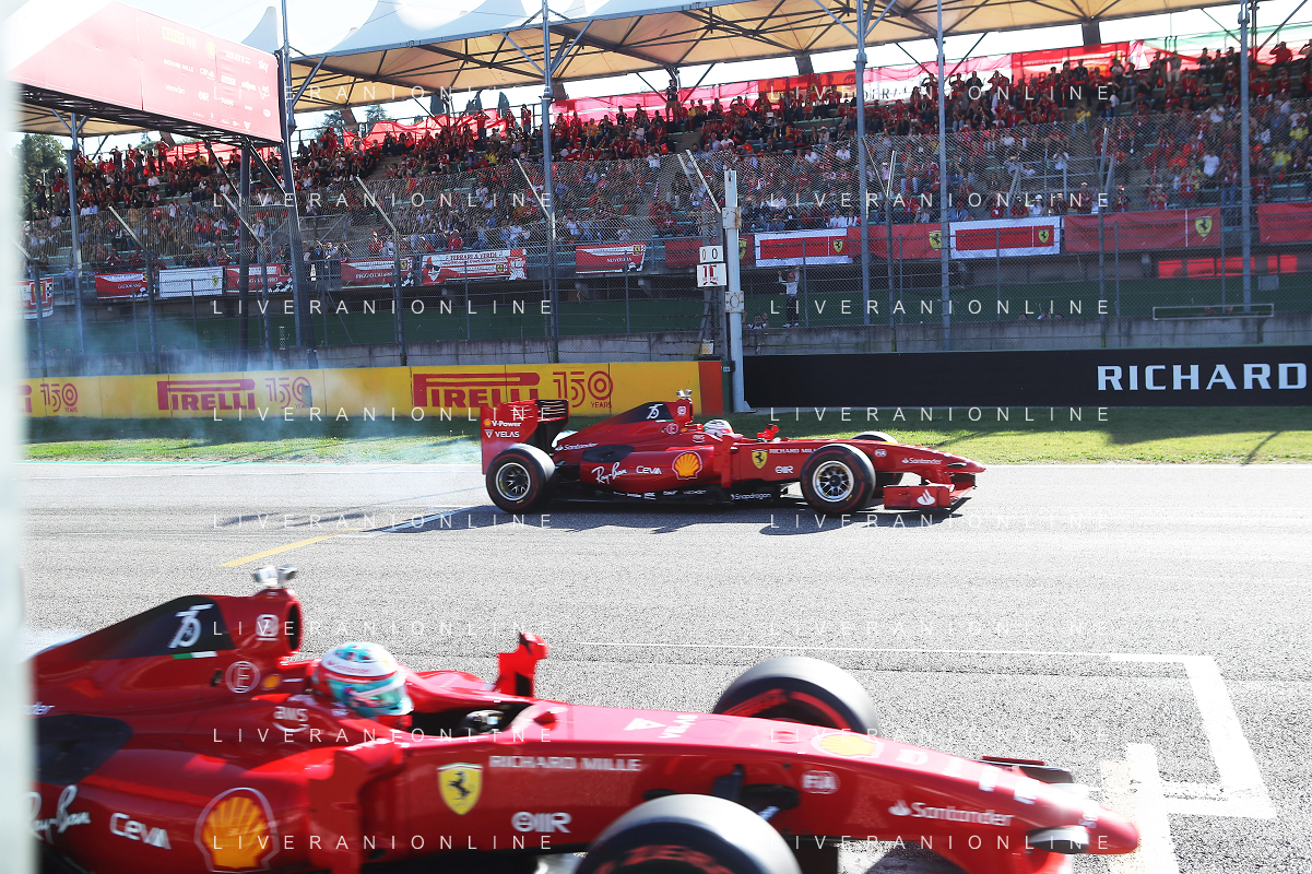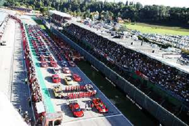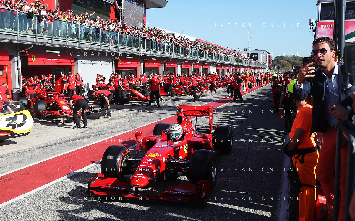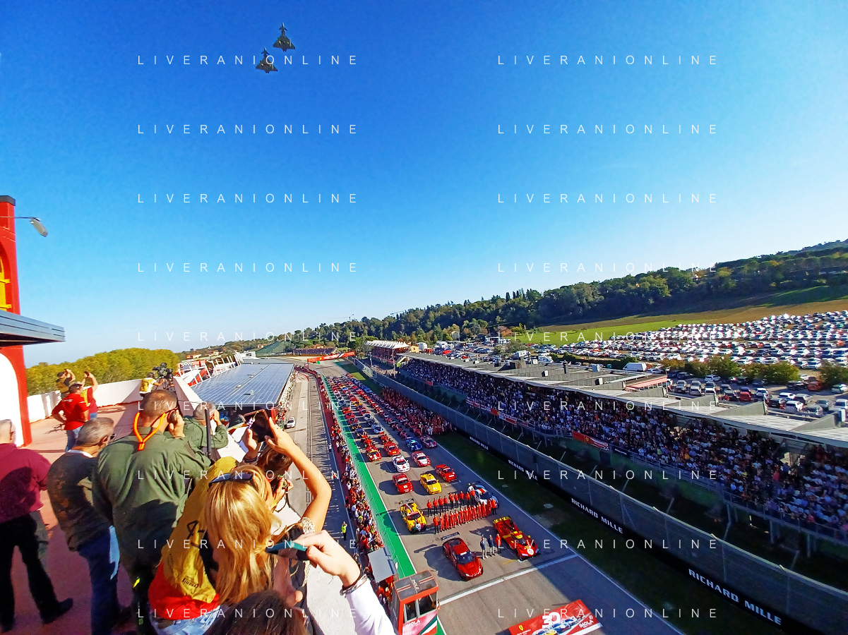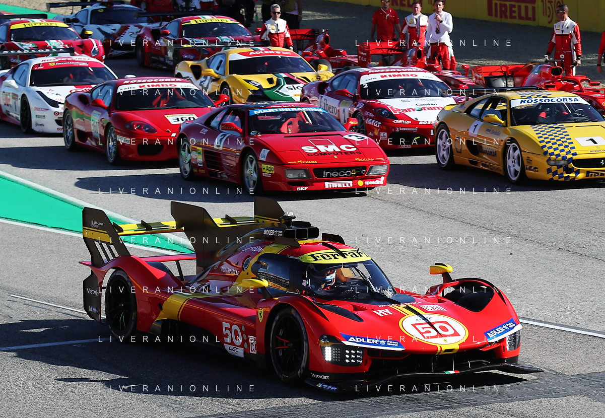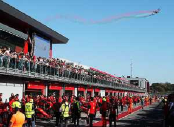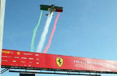 IMOLA 30 10 2022 FERRARI FINALI MONDIALI NELLA FOTO AEREO FLY SORVOLA LA PISTA, FOTO GRUPPO FERRARI CON LA NUOVA AUTO PER LA GARA LE MANS FERRARI 499P FOTO GIANNI SANNA-AG ALDO LIVERANI SAS