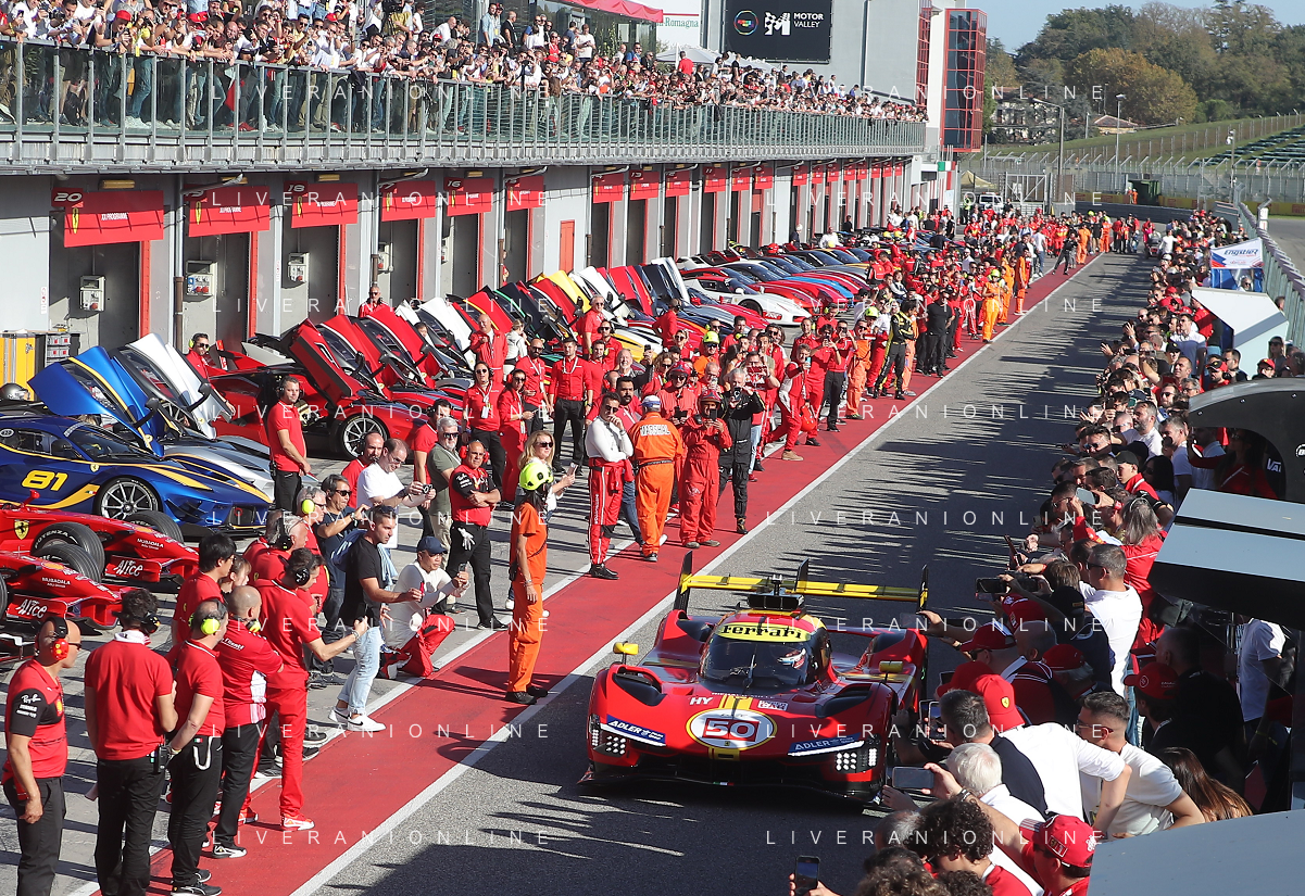 IMOLA 30 10 2022 FERRARI FINALI MONDIALI NELLA FOTO FOTO GRUPPO FERRARI CON LA NUOVA AUTO PER LA GARA LE MANS FERRARI 499P FOTO GIANNI SANNA-AG ALDO LIVERANI SAS