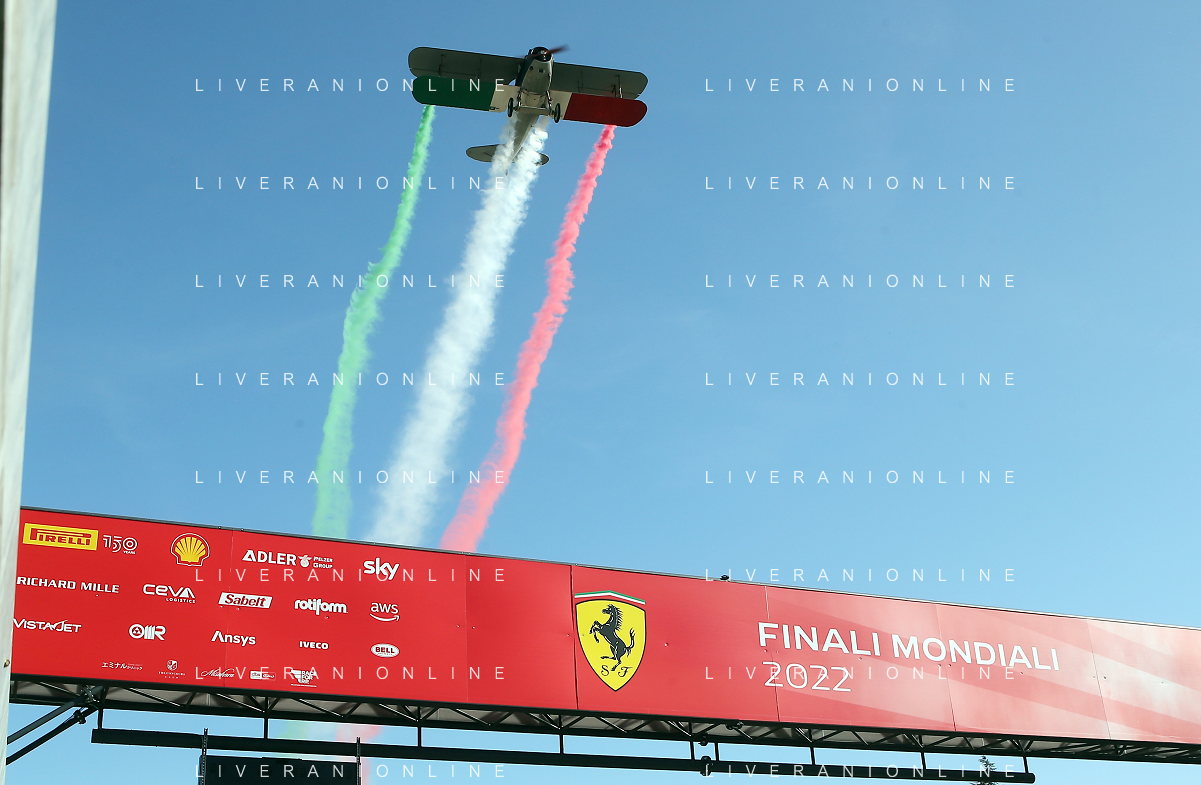 IMOLA 30 10 2022 FERRARI FINALI MONDIALI NELLA FOTO AEREO DELLA PRIMA GUERRA MONDIALE LASCIA LA SCIA DEL TRICOLORE FOTO GIANNI SANNA-AG ALDO LIVERANI SAS