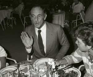 RETROSPETTIVA PHILIPPE LEROY ATTORE NELLA FOTO PHILIPPE LEROY A TAORMINA NELL'ANNO 1980 AL PREMIO DAVID DI DONATELLO CON WILLIAM GRASSO E IL REGISTA DE SILVESTRO RINO AG ALDO LIVERANI SAS