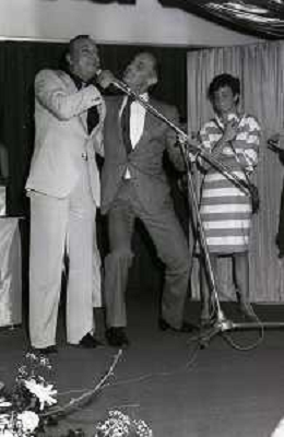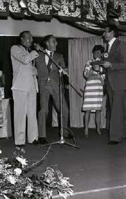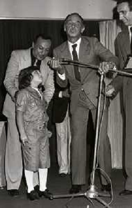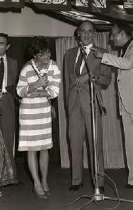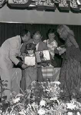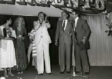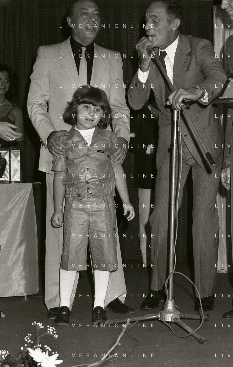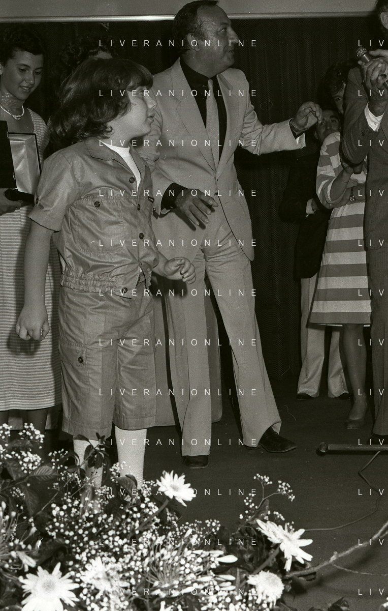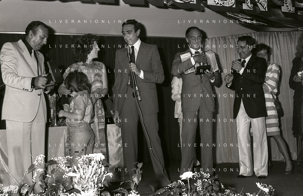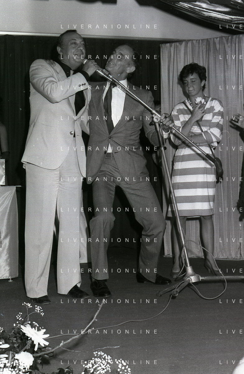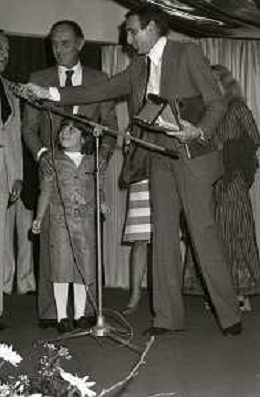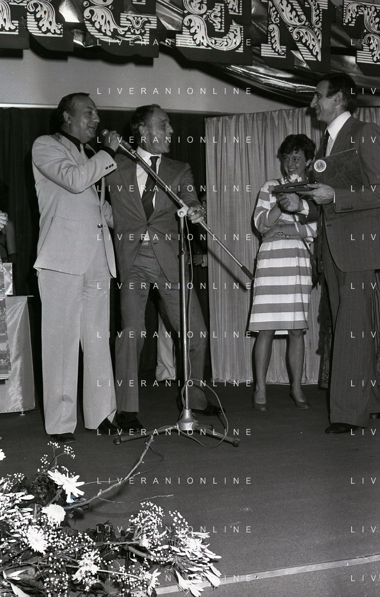 RETROSPETTIVA PHILIPPE LEROY ATTORE NELLA FOTO PHILIPPE LEROY A TAORMINA NELL'ANNO 1980 AL PREMIO DAVID DI DONATELLO CON PIPPO BAUDO AG ALDO LIVERANI SAS