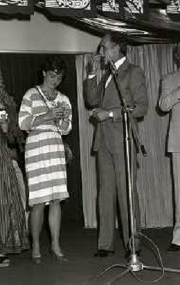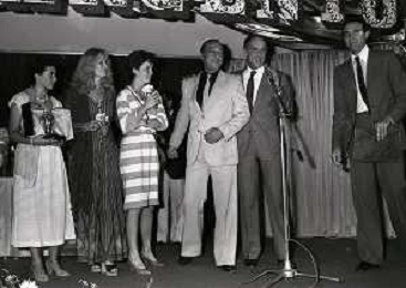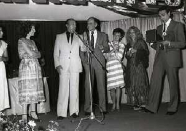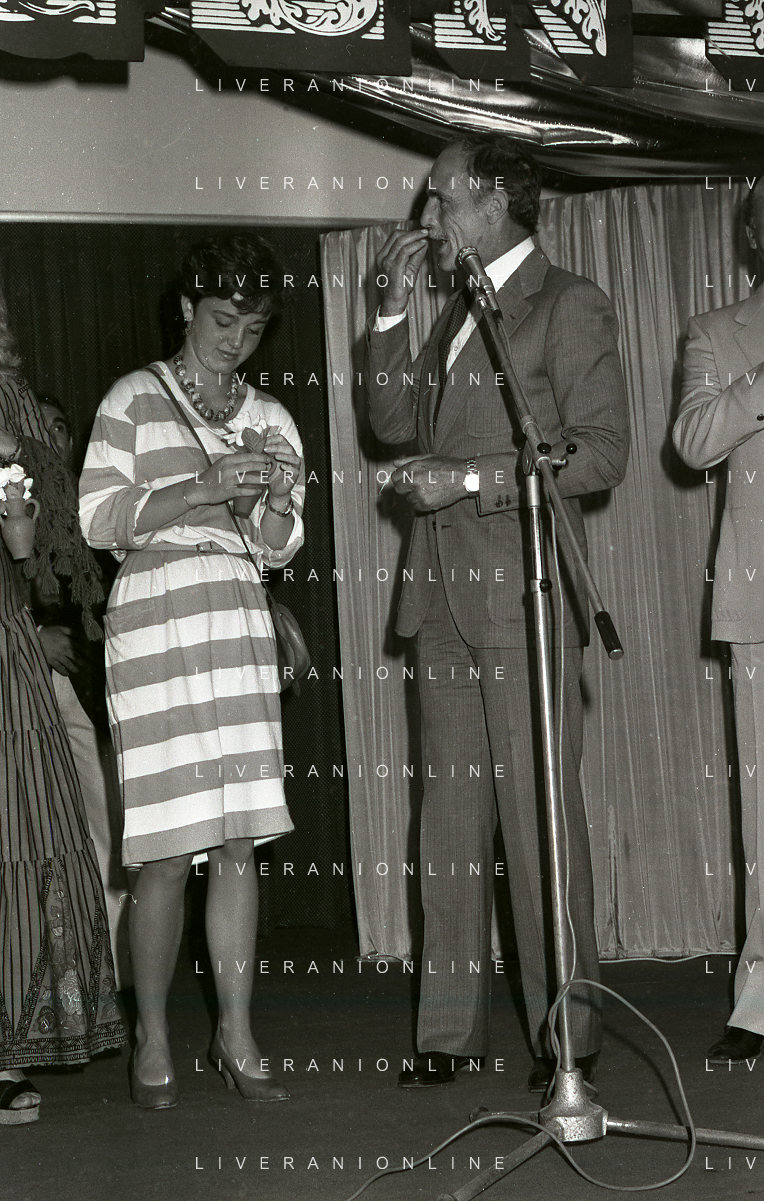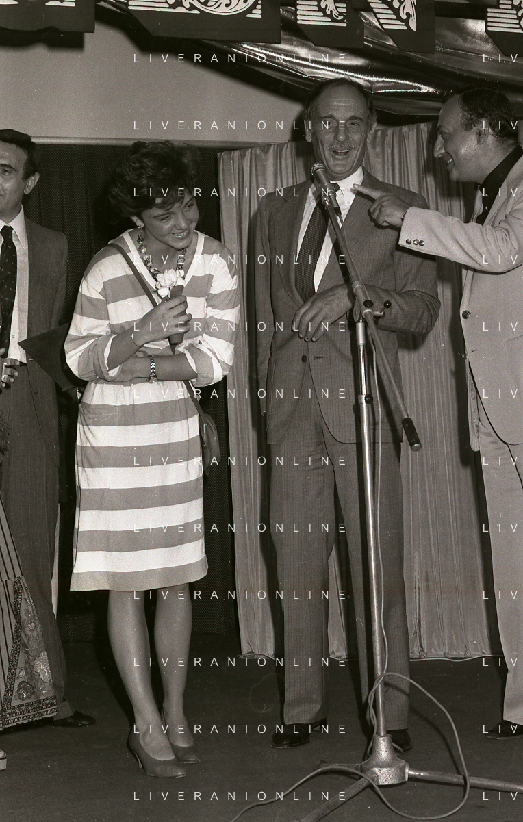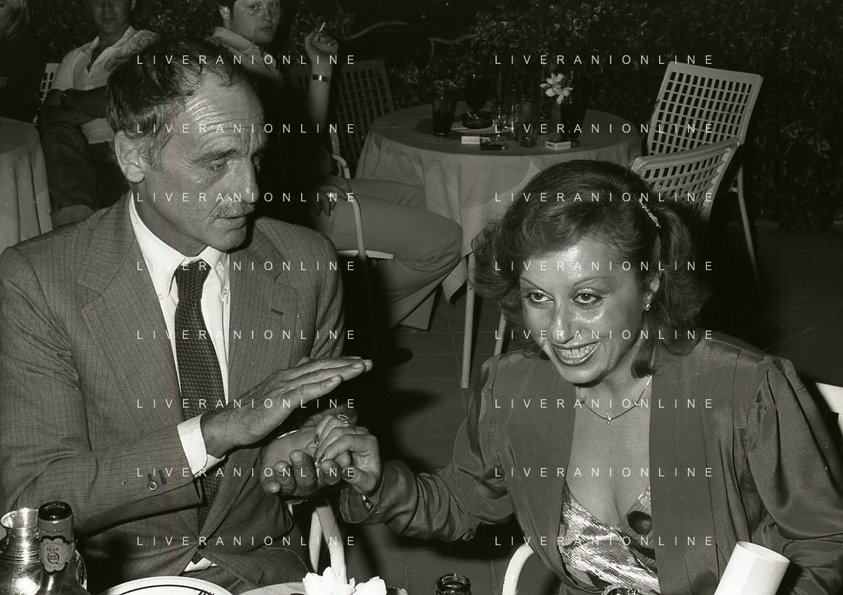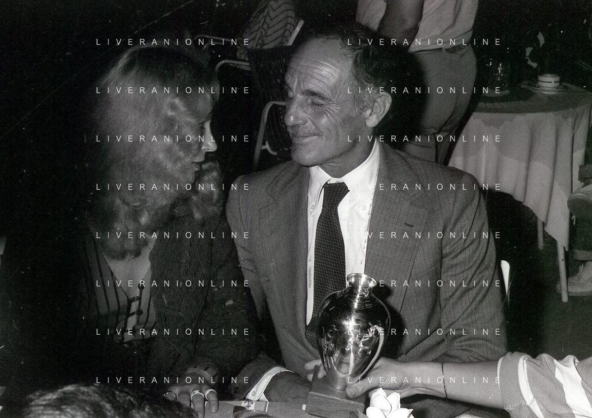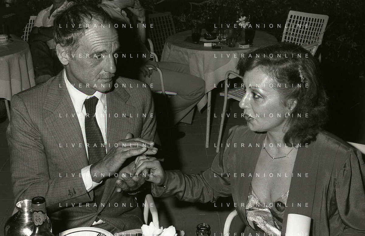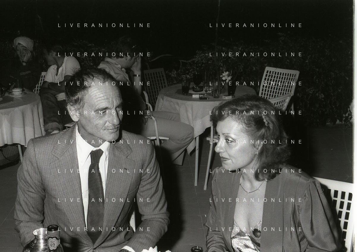 RETROSPETTIVA PHILIPPE LEROY ATTORE NELLA FOTO PHILIPPE LEROY A TAORMINA NELL'ANNO 1980 AL DAVID DI DONATELLO CON LA MOGLIE DI ALFIO DE MARIA AG ALDO LIVERANI SAS