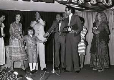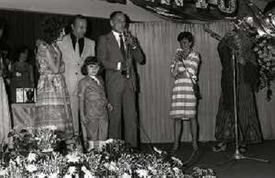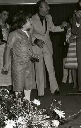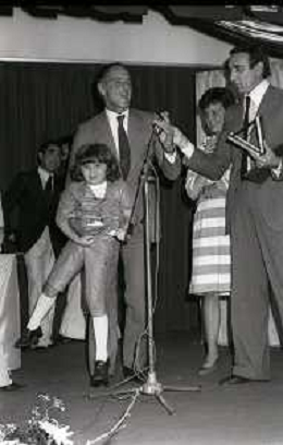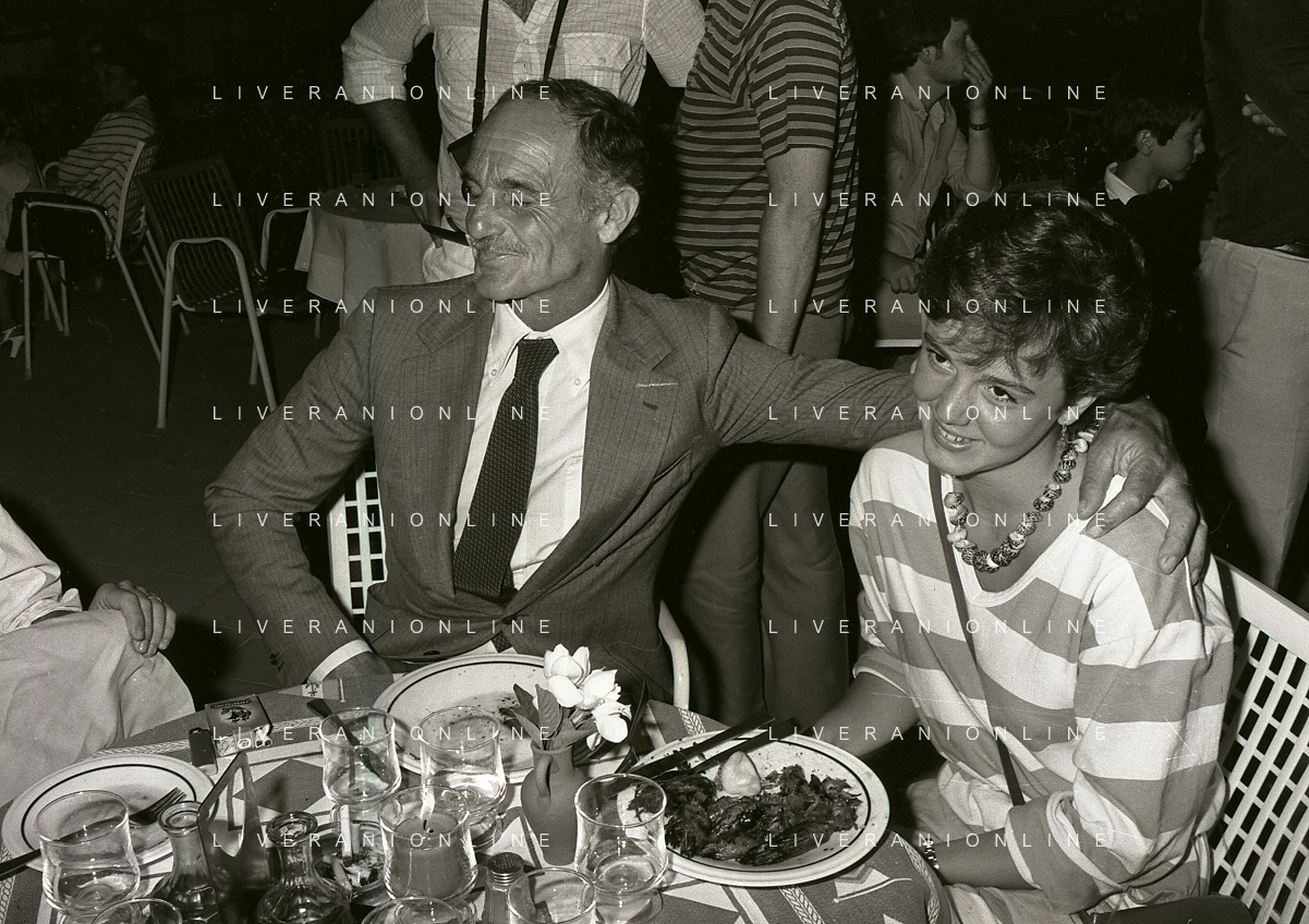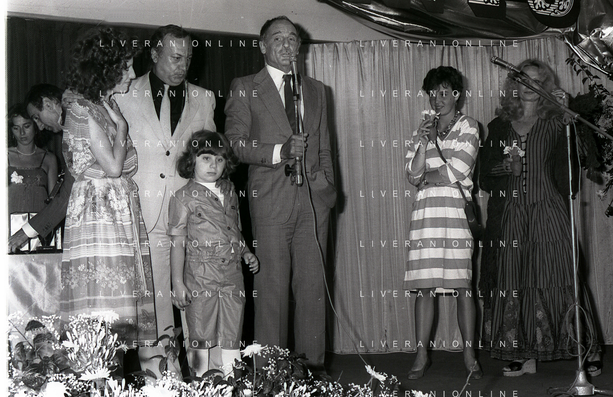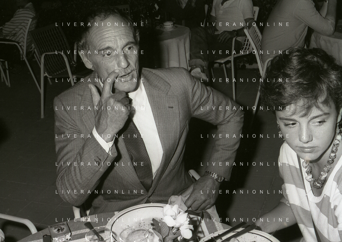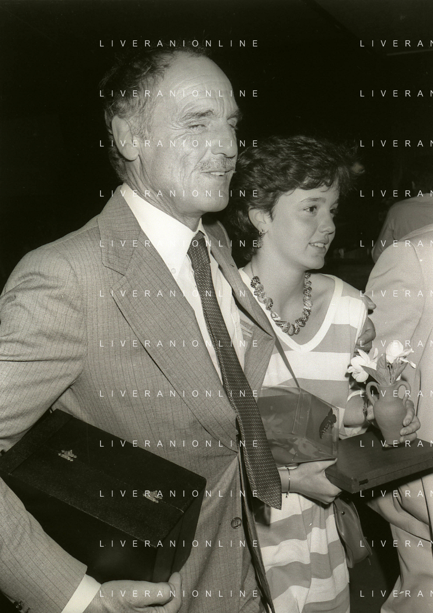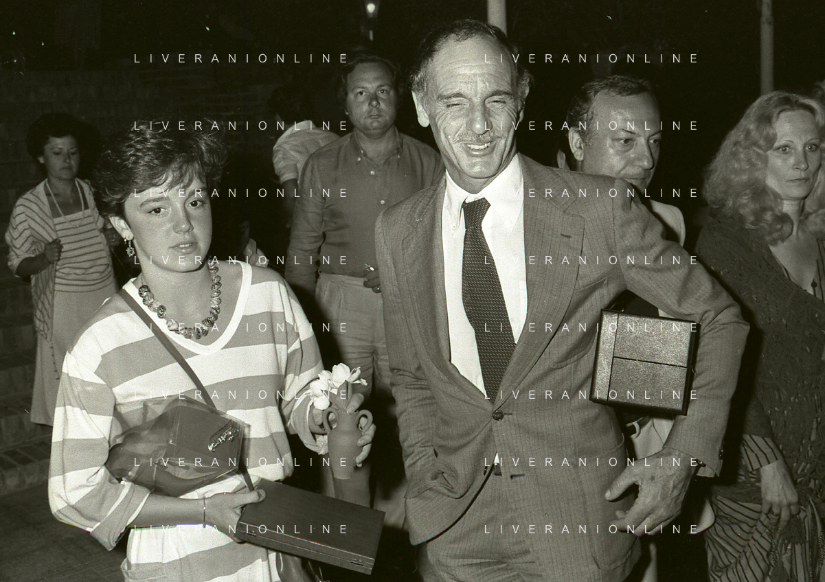 RETROSPETTIVA PHILIPPE LEROY ATTORE NELLA FOTO PHILIPPE LEROY A TAORMINA NELL'ANNO 1980 AL PREMIO DAVID DI DONATELLO CON LA FIGLIA PHILIPPINE AG ALDO LIVERANI SAS