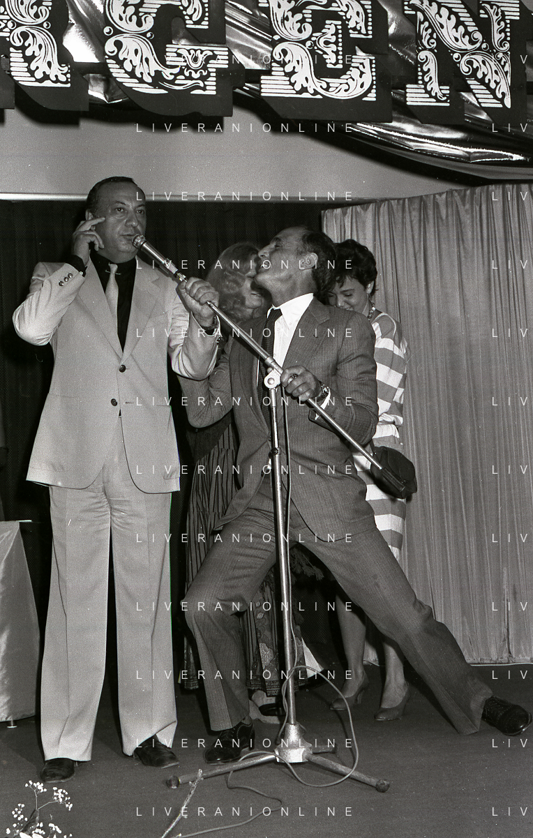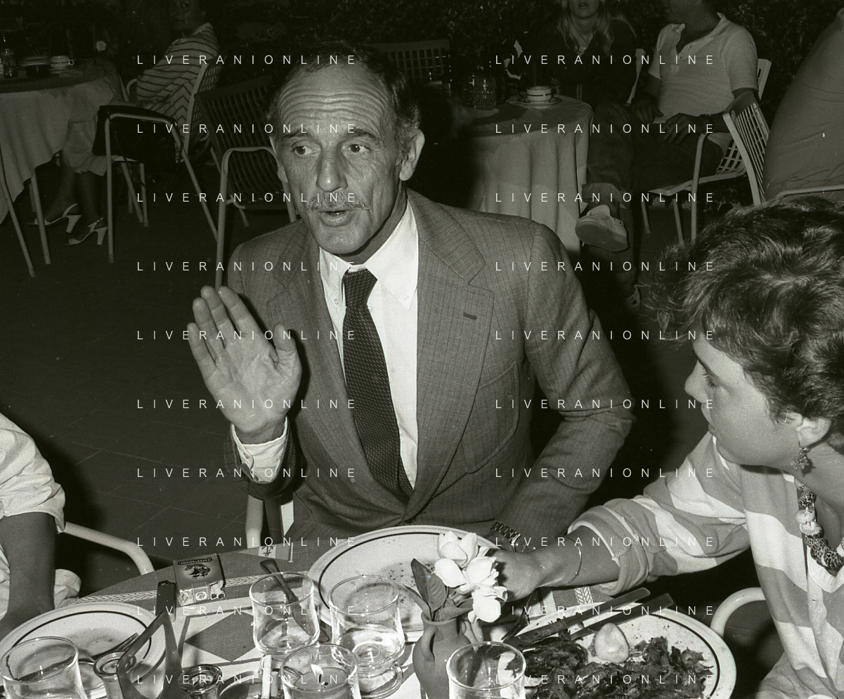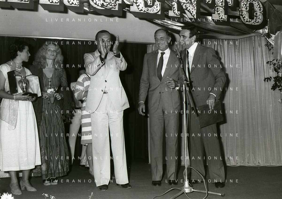 RETROSPETTIVA PHILIPPE LEROY ATTORE NELLA FOTO PHILIPPE LEROY A TAORMINA NELL'ANNO 1980 AL PREMIO DAVID DI DONATELLO CON RINO DE SIVESTRO AG ALDO LIVERANI SAS