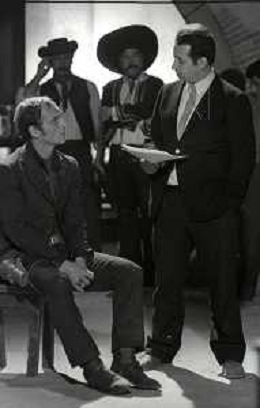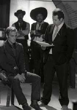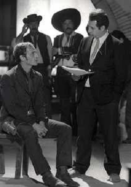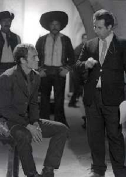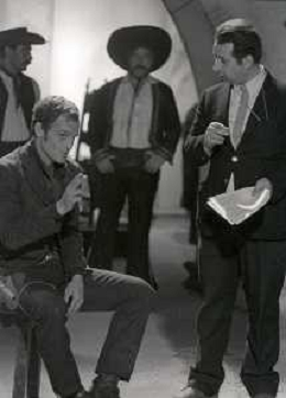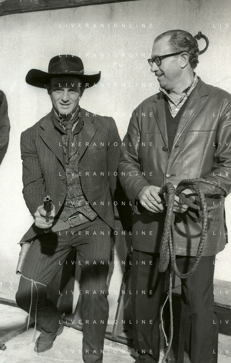 RETROSPETTIVA PHILIPPE LEROY ATTORE NELLA FOTO PHILIPPE LEROY SUL SET DEL FILM “YANKEE“ A ROMA NELL'ANNO 1967 CON IL REGISTA TINTO BRASS AG ALDO LIVERANI SAS