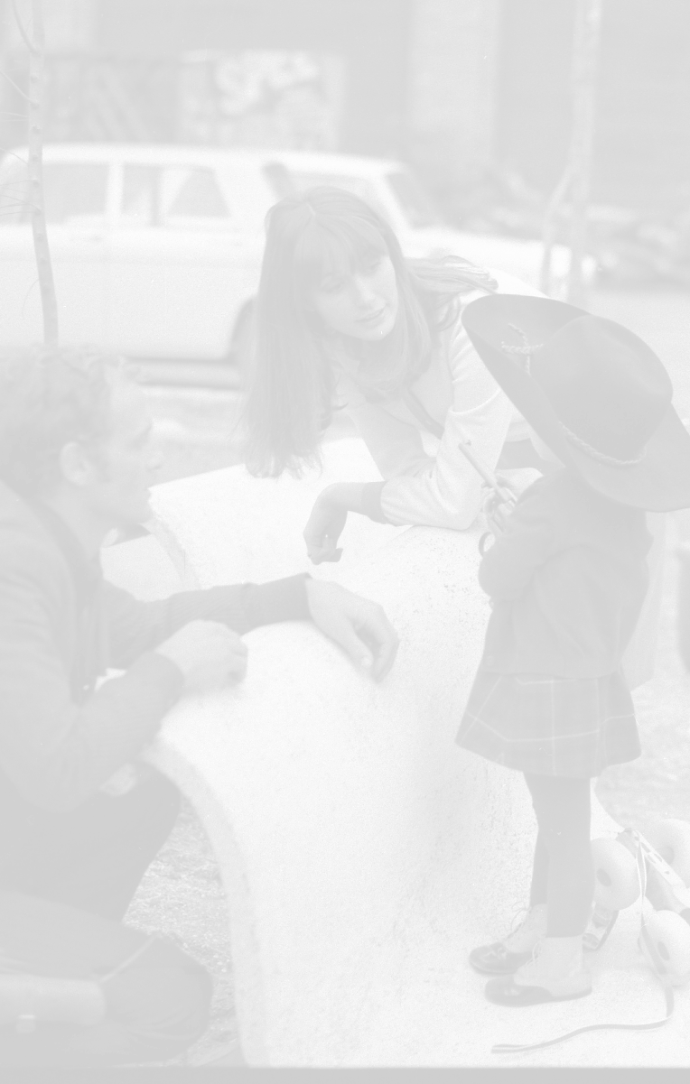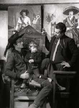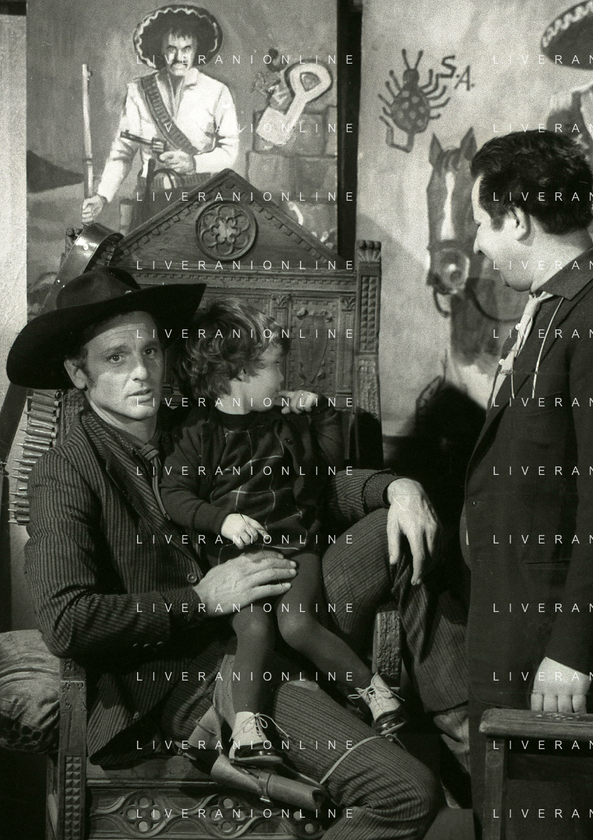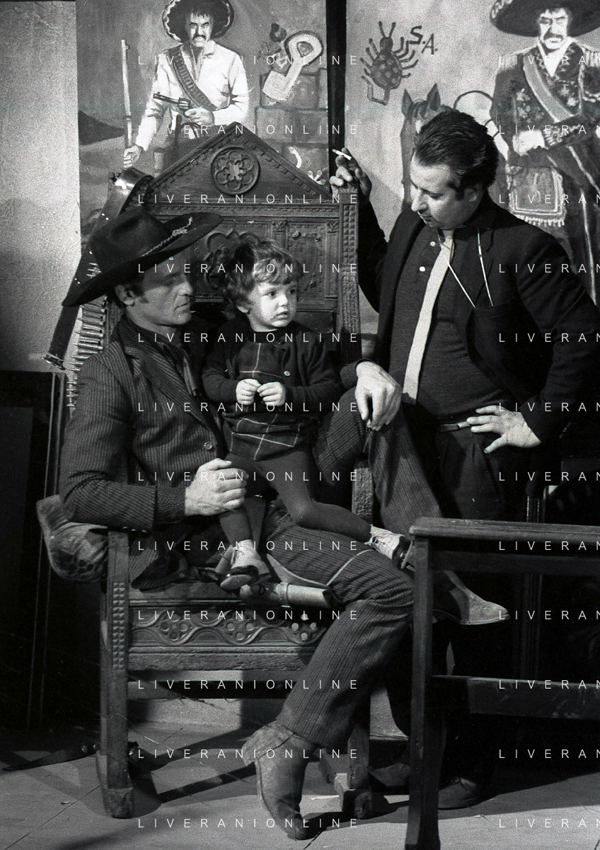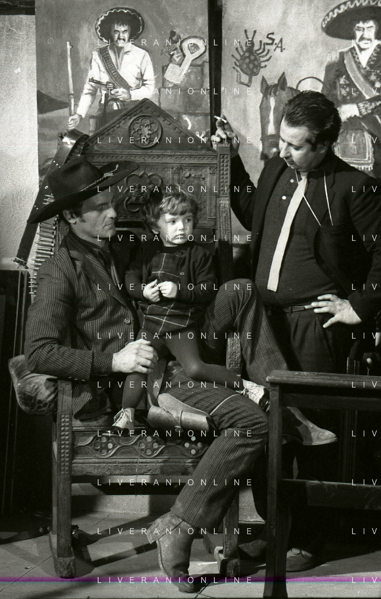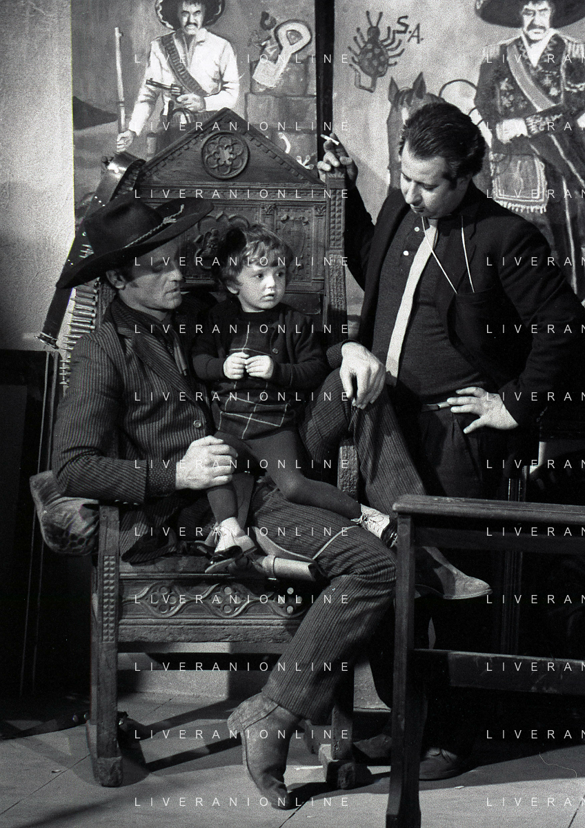 RETROSPETTIVA PHILIPPE LEROY ATTORE NELLA FOTO PHILIPPE LEROY CON LA FIGLIA PHILIPPINE E LA COMPAGNA FRANCOIS LAURENT SUL SET DEL FILM “YANKEE“ A ROMA NELL'ANNO 1967 AG ALDO LIVERANI SAS