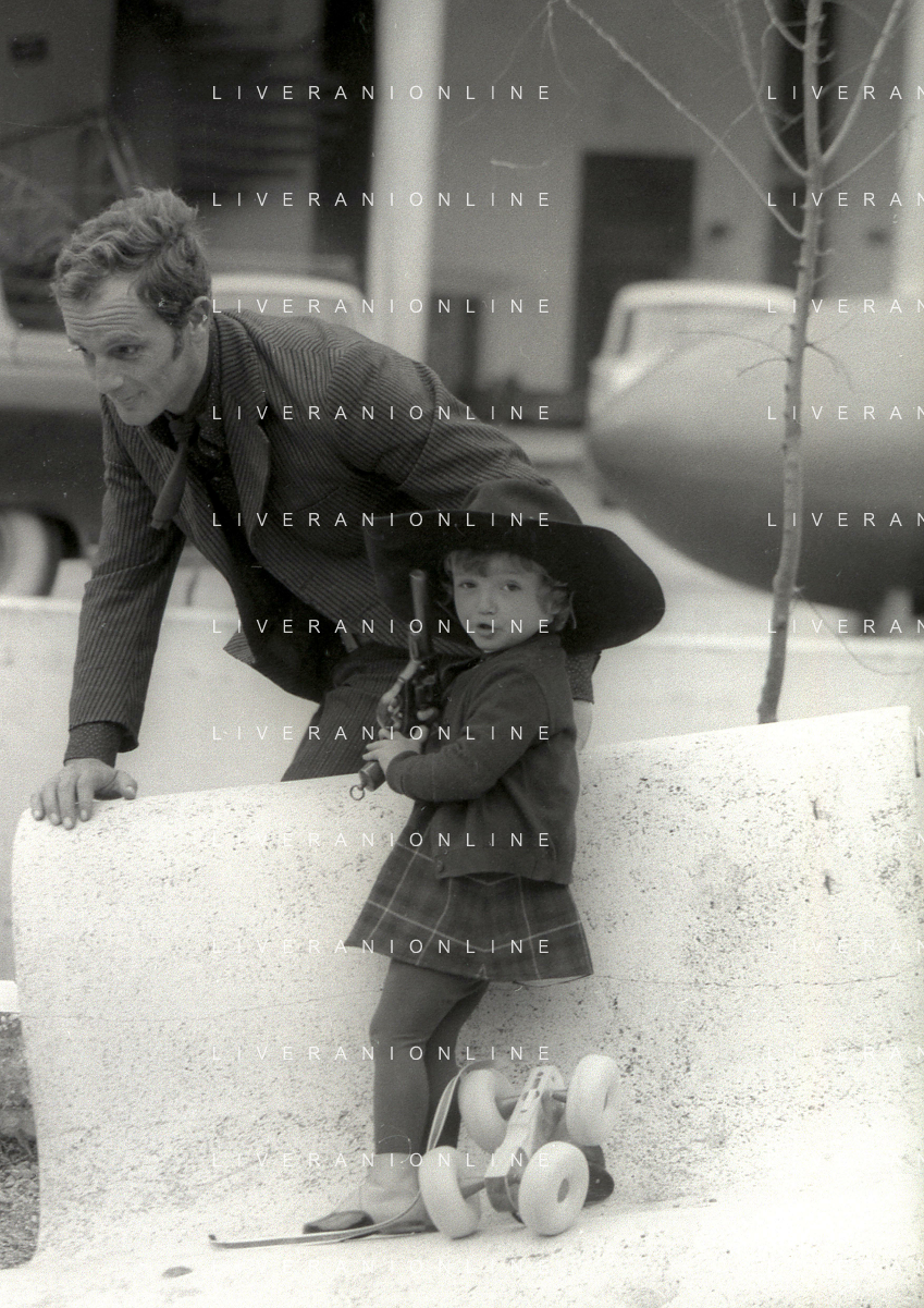 RETROSPETTIVA PHILIPPE LEROY ATTORE NELLA FOTO PHILIPPE LEROY CON LA FIGLIA PHILIPPINE SUL SET DEL FILM “YANKEE“ A ROMA NELL'ANNO 1967 AG ALDO LIVERANI SAS